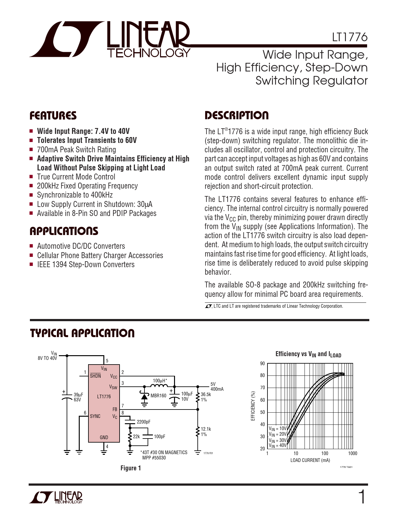The LT®1776 is a wide input range, high efficiency Buck ■