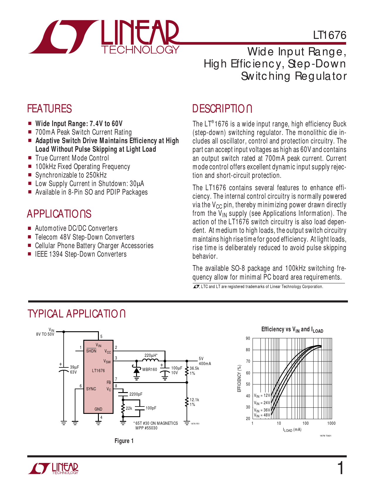 LT1676 Wide Input Range, High Efficiency, Step-Down Switching Regulator