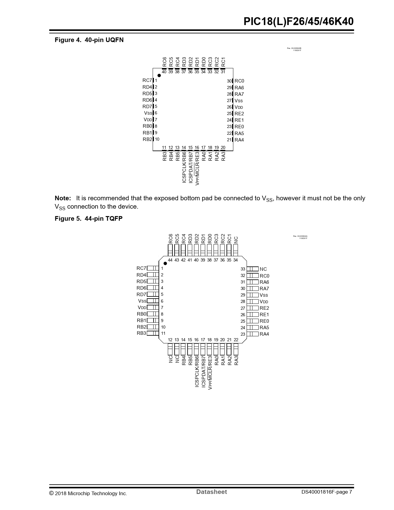 | Páginas / Página | 822 / 7 — PIC18(L)F26/45/46K40. Figure 4. 40-pin UQFN. Note: . Figure 5. 44-pin … |