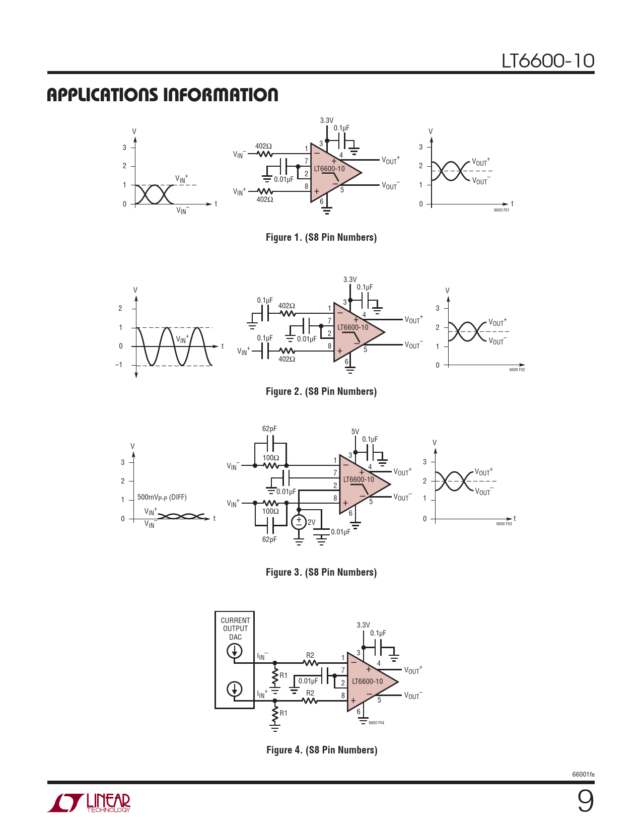 CURRENT 3.3V OUTPUT 0.1μF DAC – 3 IIN R2 1 – 4 7 + V + OUT R1 0.01μF 2 LT6600-10 I + R2 – IN 8 – + VOUT 5 6 R1 6600 F04