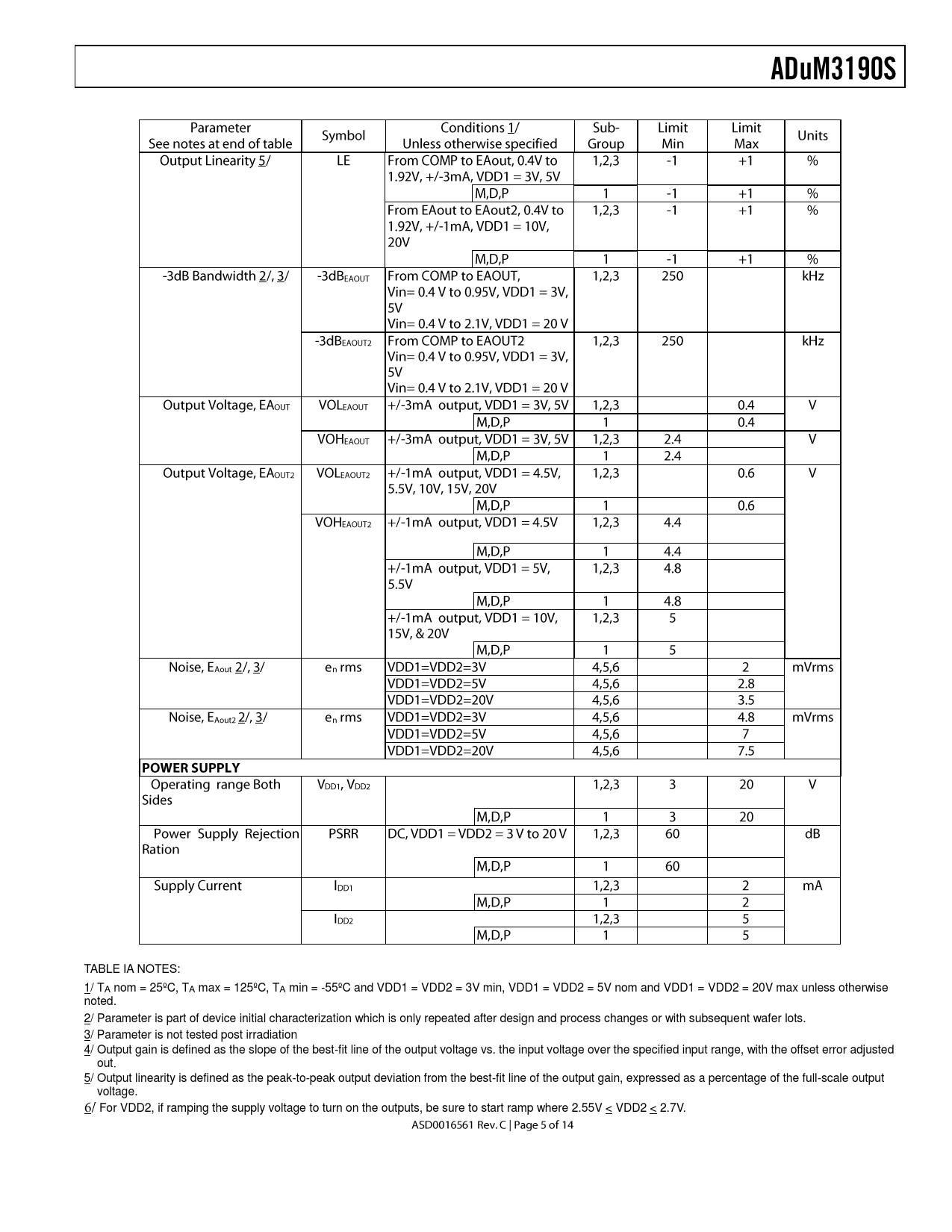 TABLE. IA. NOTES:. 1/. TA. nom. =. 25ºC,. TA. max. =. 125ºC,. TA. min. =. -55ºC. and. VDD1. =. VDD2. =. 3V. min,. VDD1. =. VDD2. =. 5V. nom. and. VDD1. =. VDD2. =. 20V. max. unless. otherwise