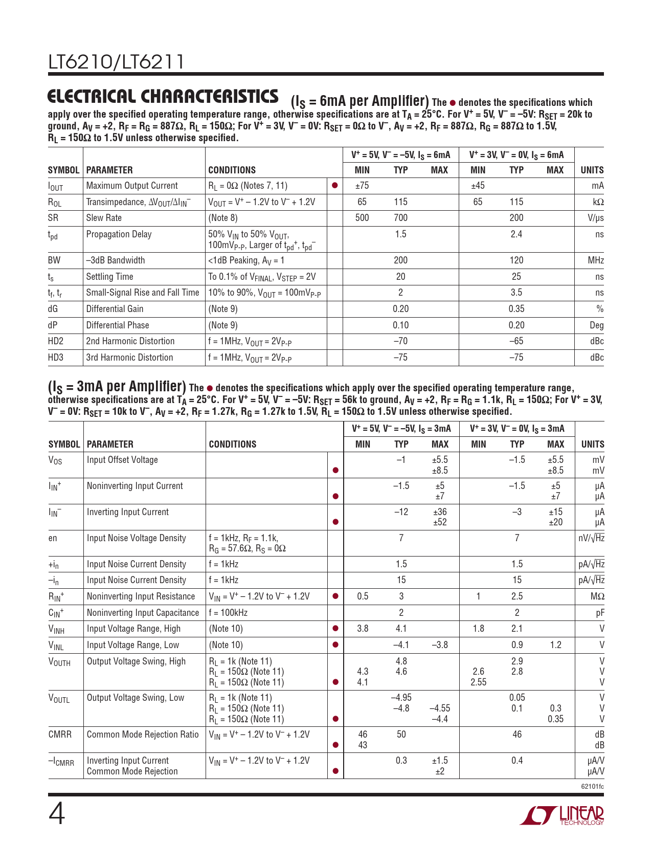 Datasheet LT6210, LT6211 (Analog Devices) - 4