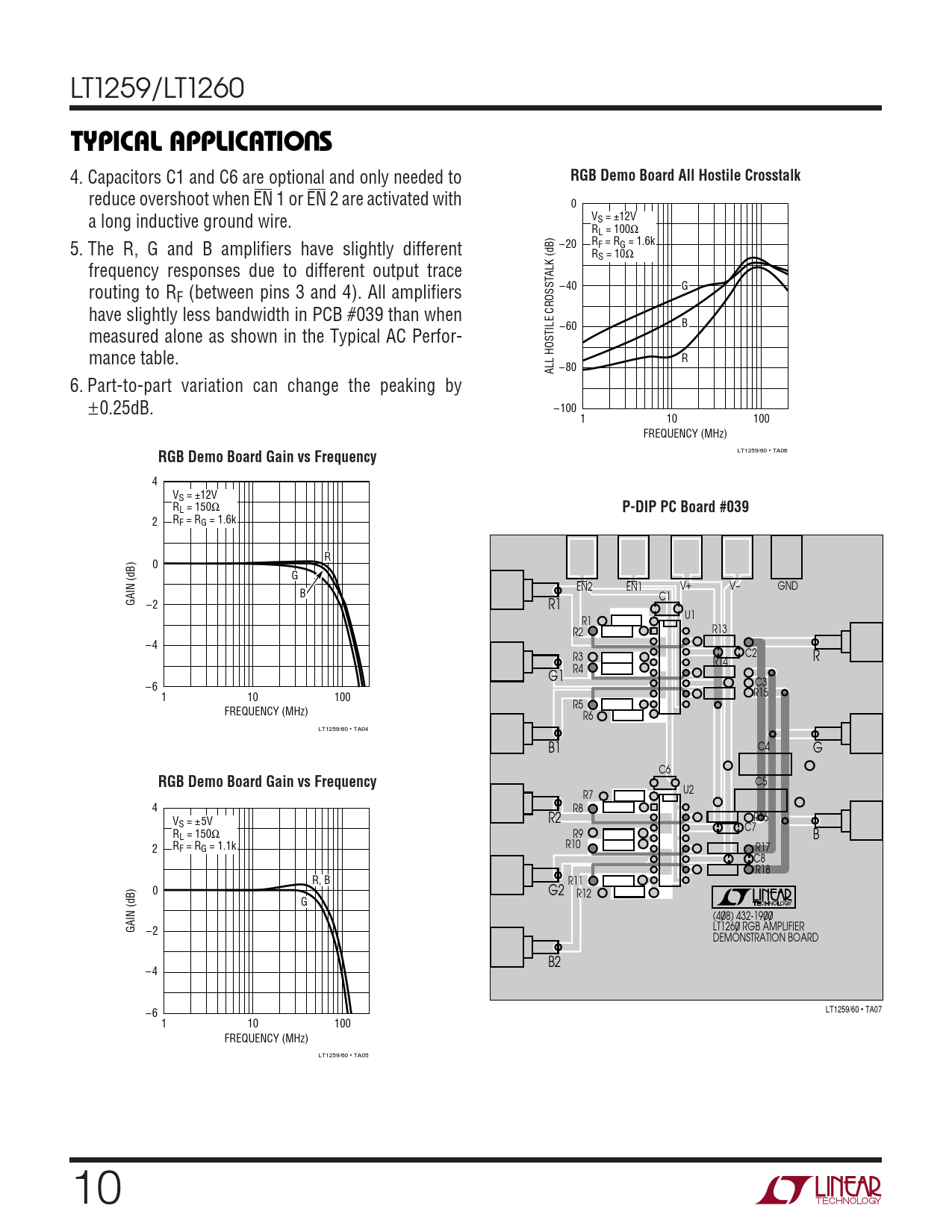 TYPICAL APPLICATIO S. RGB Demo Board All Hostile Crosstalk. RGB Demo Board Gain vs Frequency. P-DIP PC Board #039