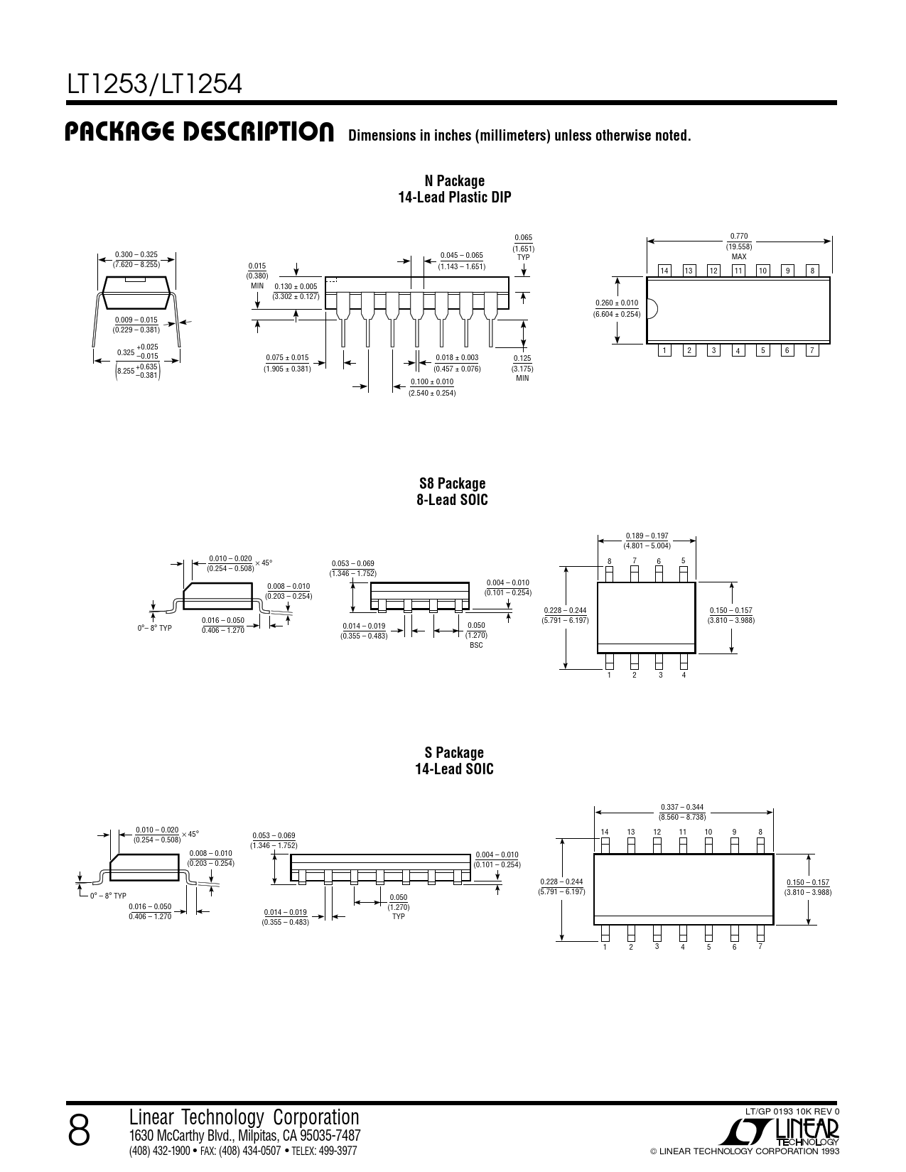 0.337 – 0.344 (8.560 – 8.738) 0.010 – 0.020 14 13 12 11 10 9 8 × 45° 0.053 – 0.069 (0.254 – 0.508) (1.346 – 1.752) 0.008 – 0.010 0.004 – 0.010 (0.203 – 0.254) (0.101 – 0.254) 0.228 – 0.244 0.150 – 0.157 (5.791 – 6.197) (3.810 – 3.988) 0° – 8° TYP 0.050 0.016 – 0.050 (1.270) 0.014 – 0.019 0.406 – 1.270 TYP (0.355 – 0.483) 1 2 3 4 5 6 7 SO14 0392 LT/GP 0193 10K REV 0 8 Linear Technology Corporation 1630 McCarthy Blvd., Milpitas, CA 95035-7487 (408) 432-1900 ● FAX: (408) 434-0507 ● TELEX: 499-3977 LINEAR TECHNOLOGY CORPORATION 1993