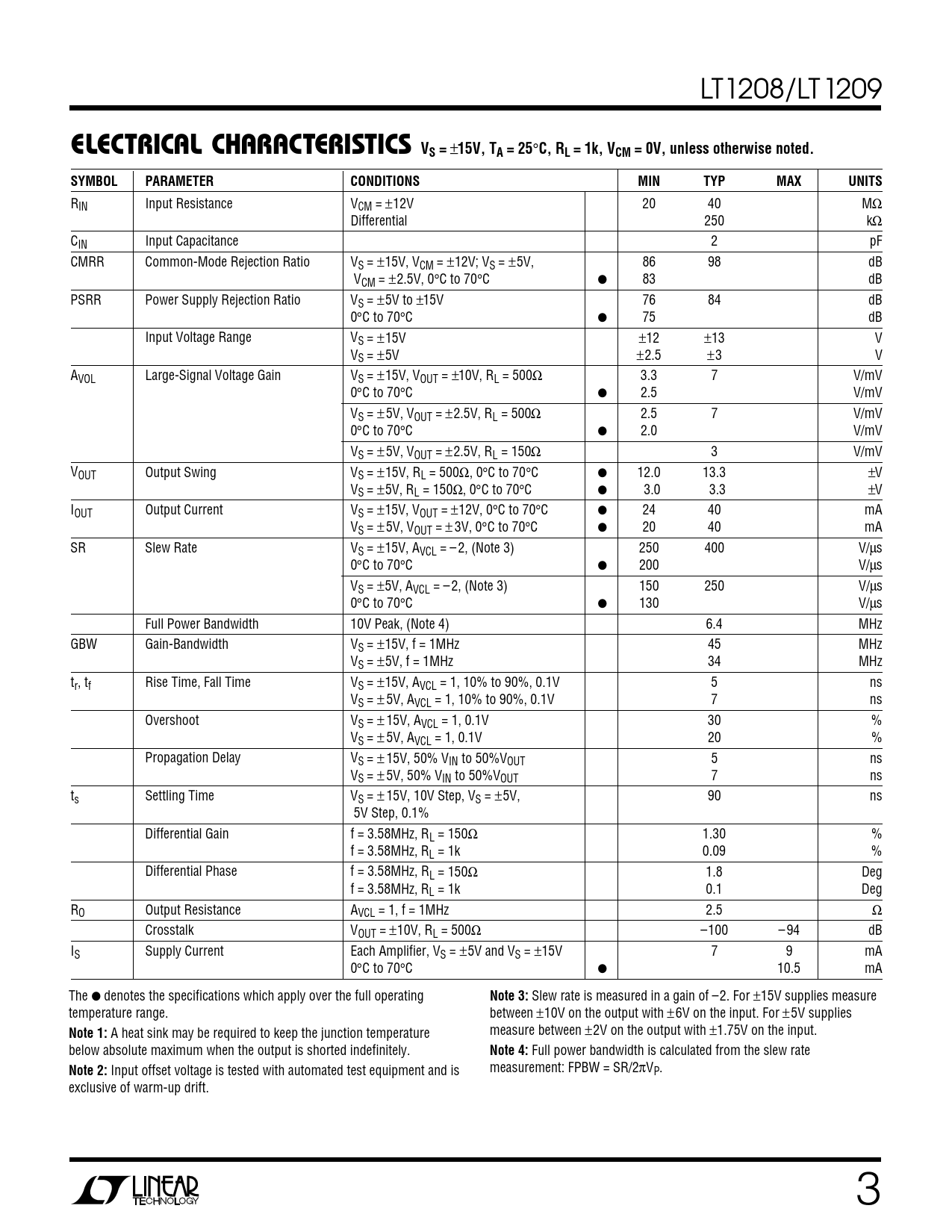 Datasheet LT1208, LT1209 (Analog Devices) - 3