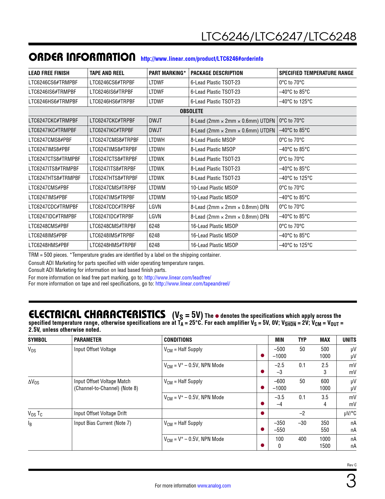 ORDER INFORMATION http://www.linear.com/product/LTC6246#orderinfo. LEAD FREE FINISH. TAPE AND REEL