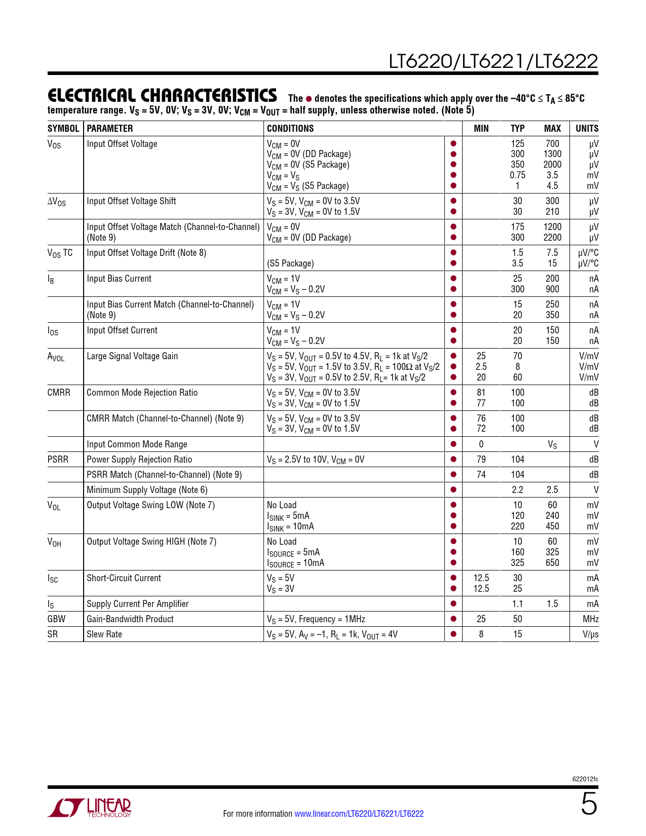 Datasheet LT6220, LT6221, LT6222 (Analog Devices) - 5