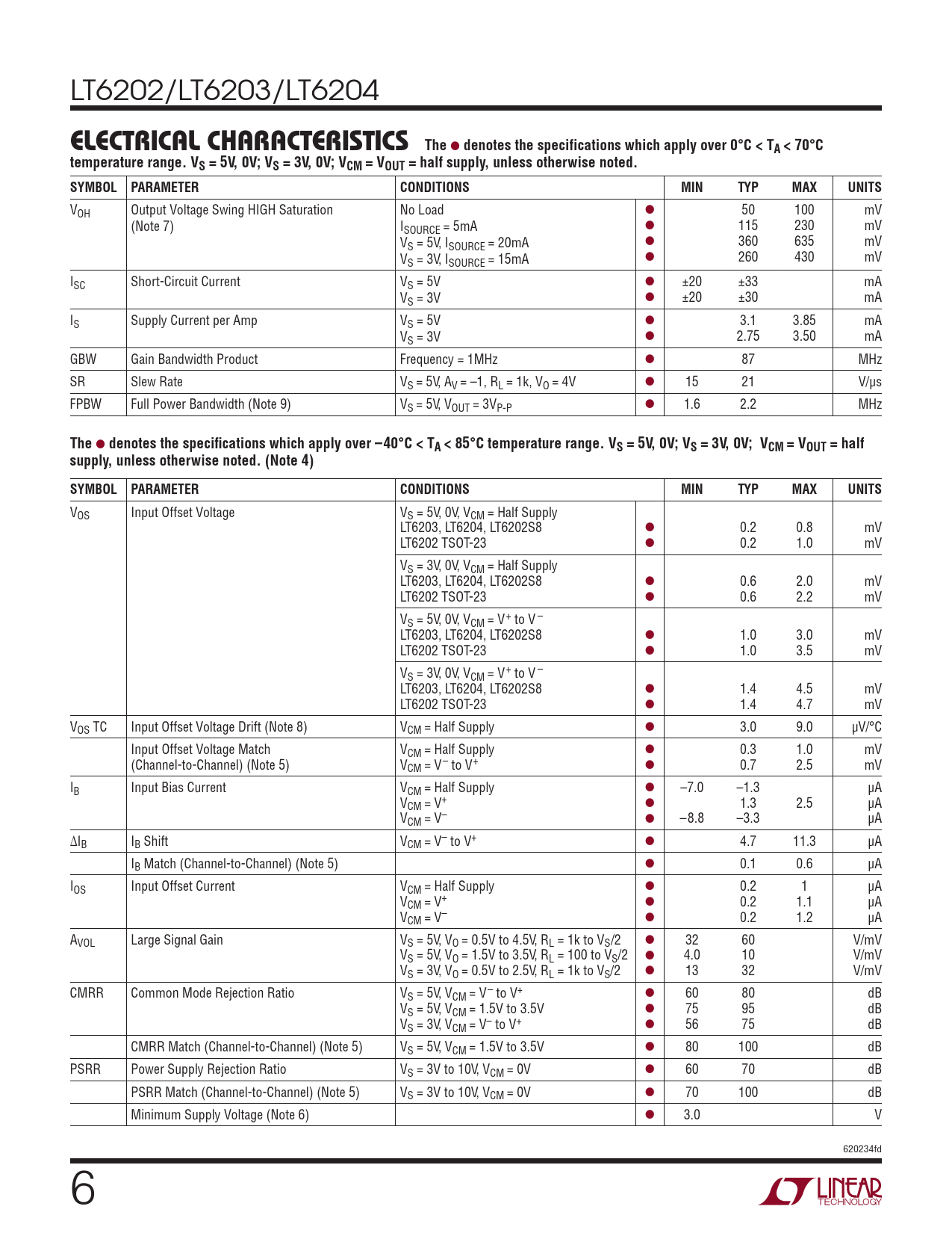 Datasheet LT6202, LT6203, LT6204 (Analog Devices) - 6