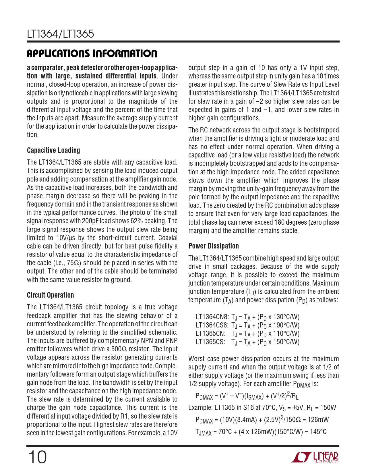 APPLICATIONS INFORMATION a comparator, peak detector or other open-loop applica-