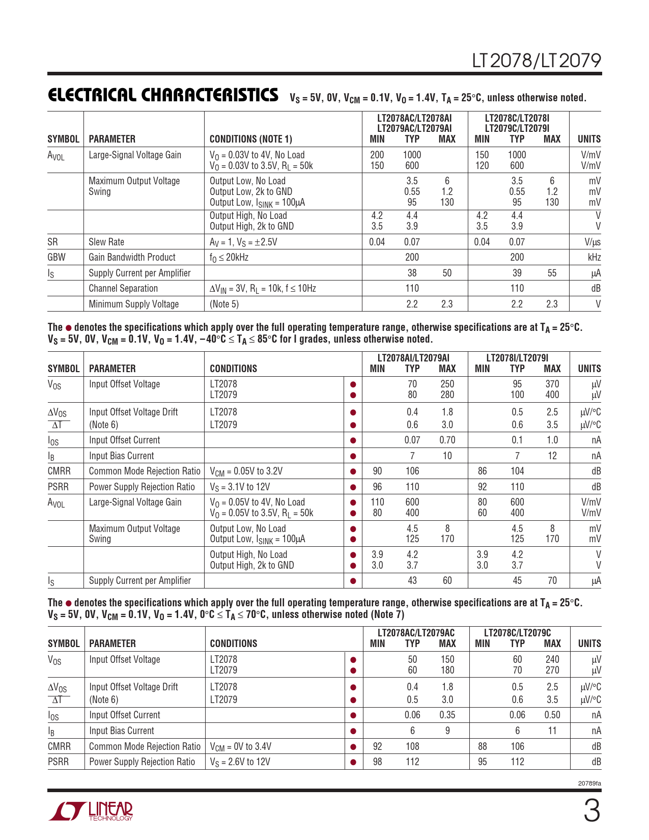 Datasheet LT2078, LT2079 (Analog Devices) - 3