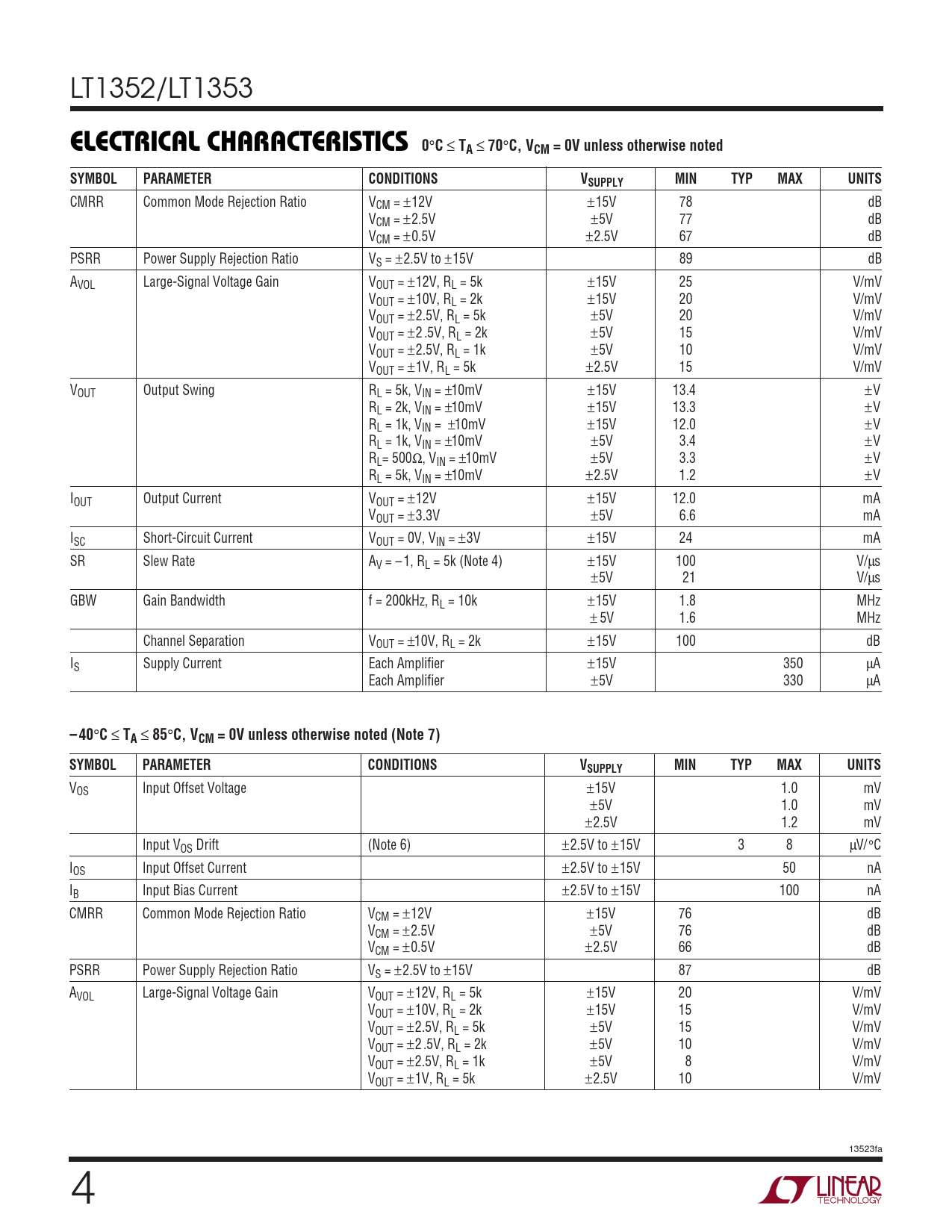 Datasheet LT1352, LT1353 (Analog Devices) - 4
