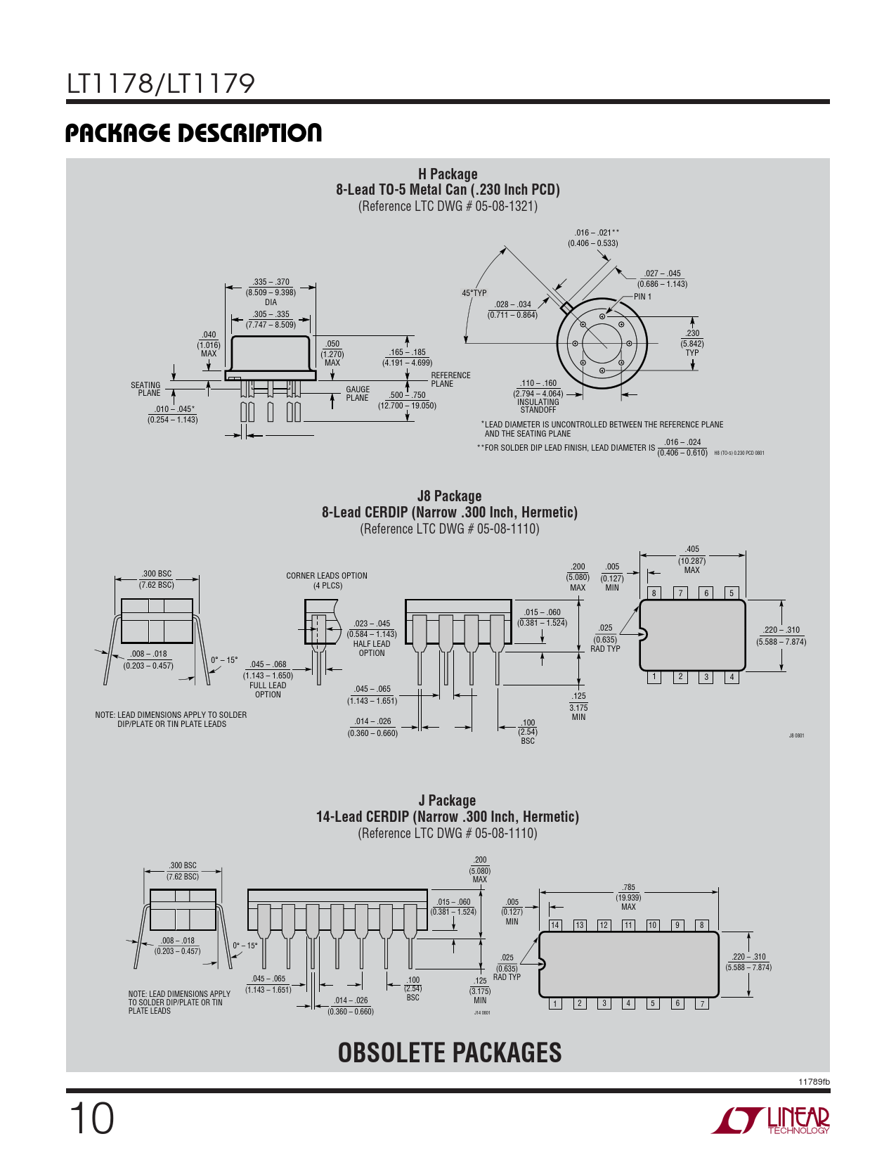 PACKAGE DESCRIPTIO. H Package. 8-Lead TO-5 Metal Can (.230 Inch PCD). J8 Package. 8-Lead CERDIP (Narrow .300 Inch, Hermetic)
