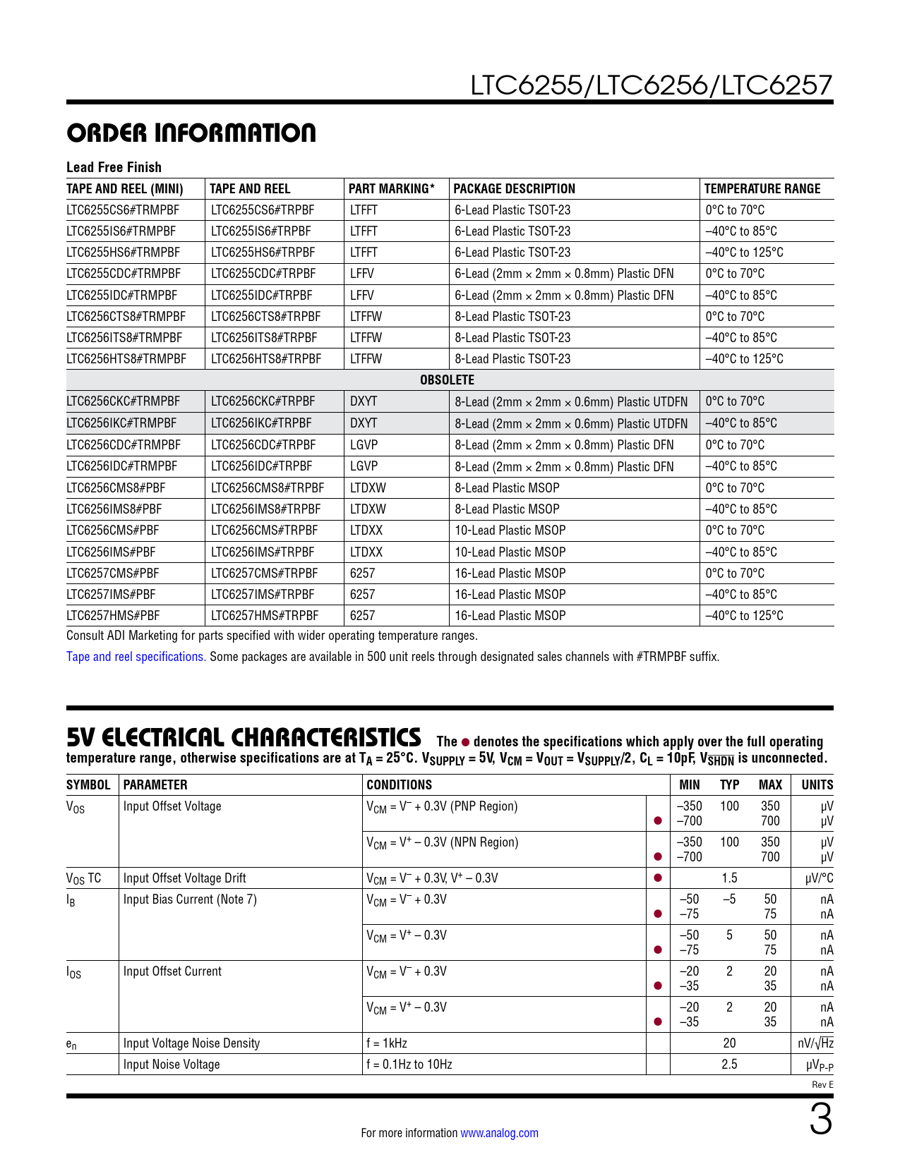 Datasheet LTC6255, LTC6256, LTC6257 (Analog Devices) - 3