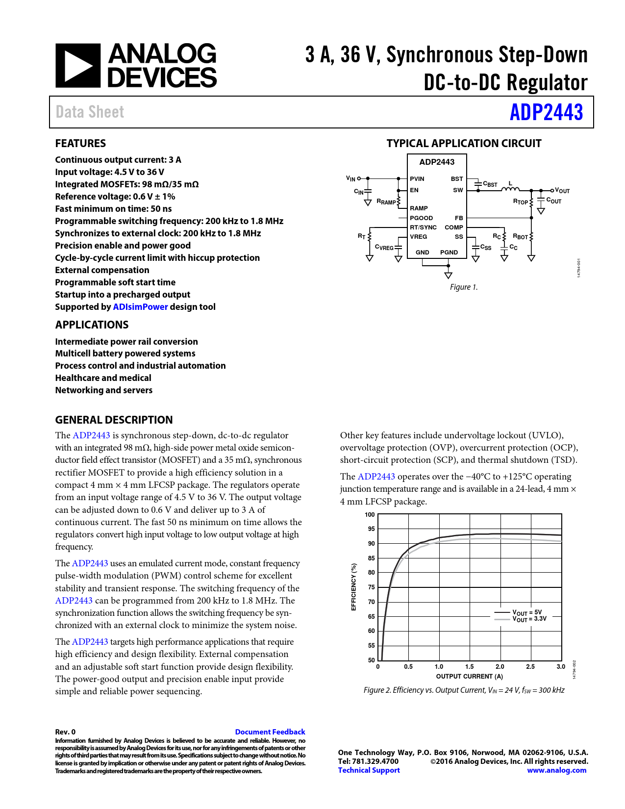 3 A, 36 V, Synchronous Step-Down. DC-to-DC Regulator. Data Sheet. ADP2443. FEATURES. TYPICAL APPLICATION CIRCUIT