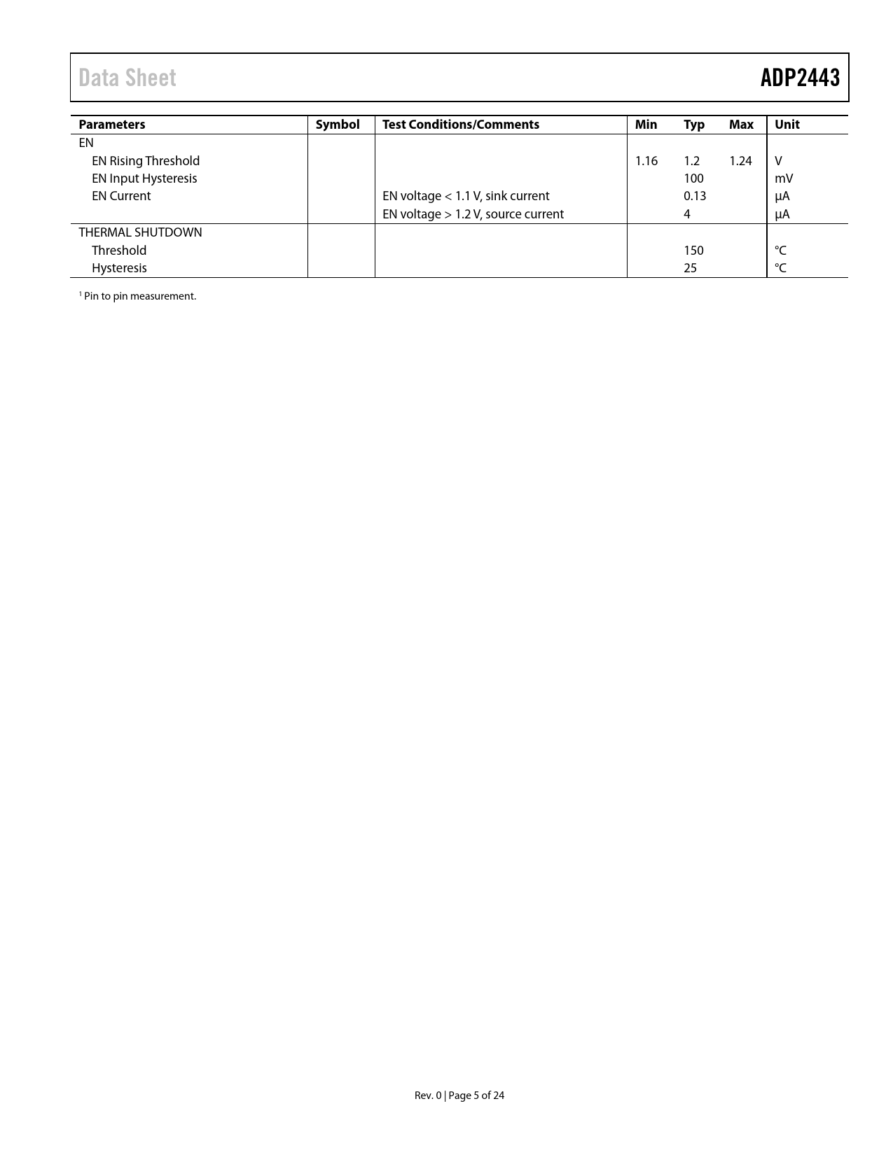 Páginas / Página24 / 5 — Data Sheet. ADP2443. Parameters. Symbol. Test Conditions/Comments. Min. …