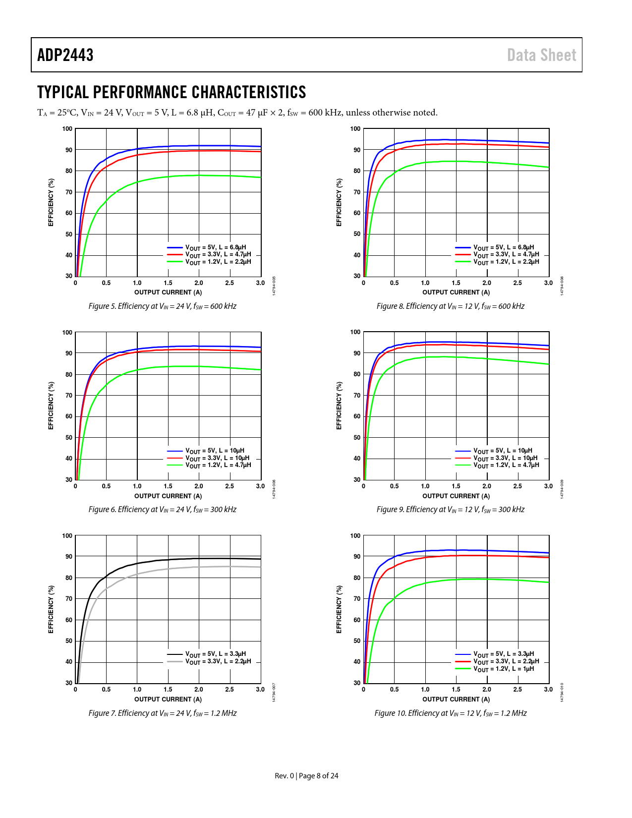 ADP2443. Data Sheet. TYPICAL PERFORMANCE CHARACTERISTICS. 100. NCY. ICI. VOUT = 5V, L = 6.8µH. VOUT = 3.3V, L = 4.7µH
