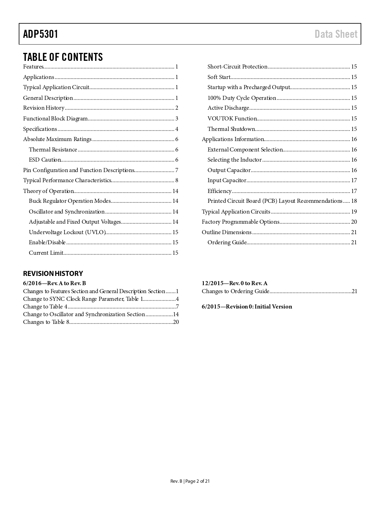 Páginas / Página21 / 2 — ADP5301. Data Sheet. TABLE OF CONTENTS. REVISION HISTORY 6/2016—Rev. A to …