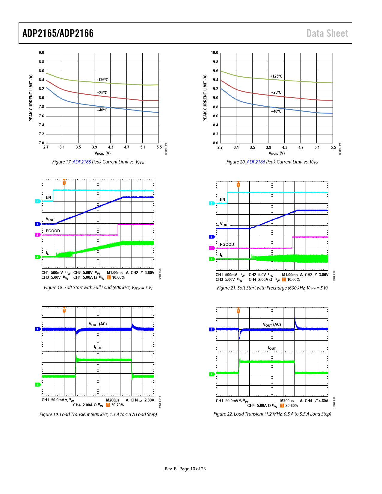 10 Figure 17. ADP2165 Peak Current Limit vs. VPVIN Figure 20. ADP2166 Peak Current Limit vs. VPVIN