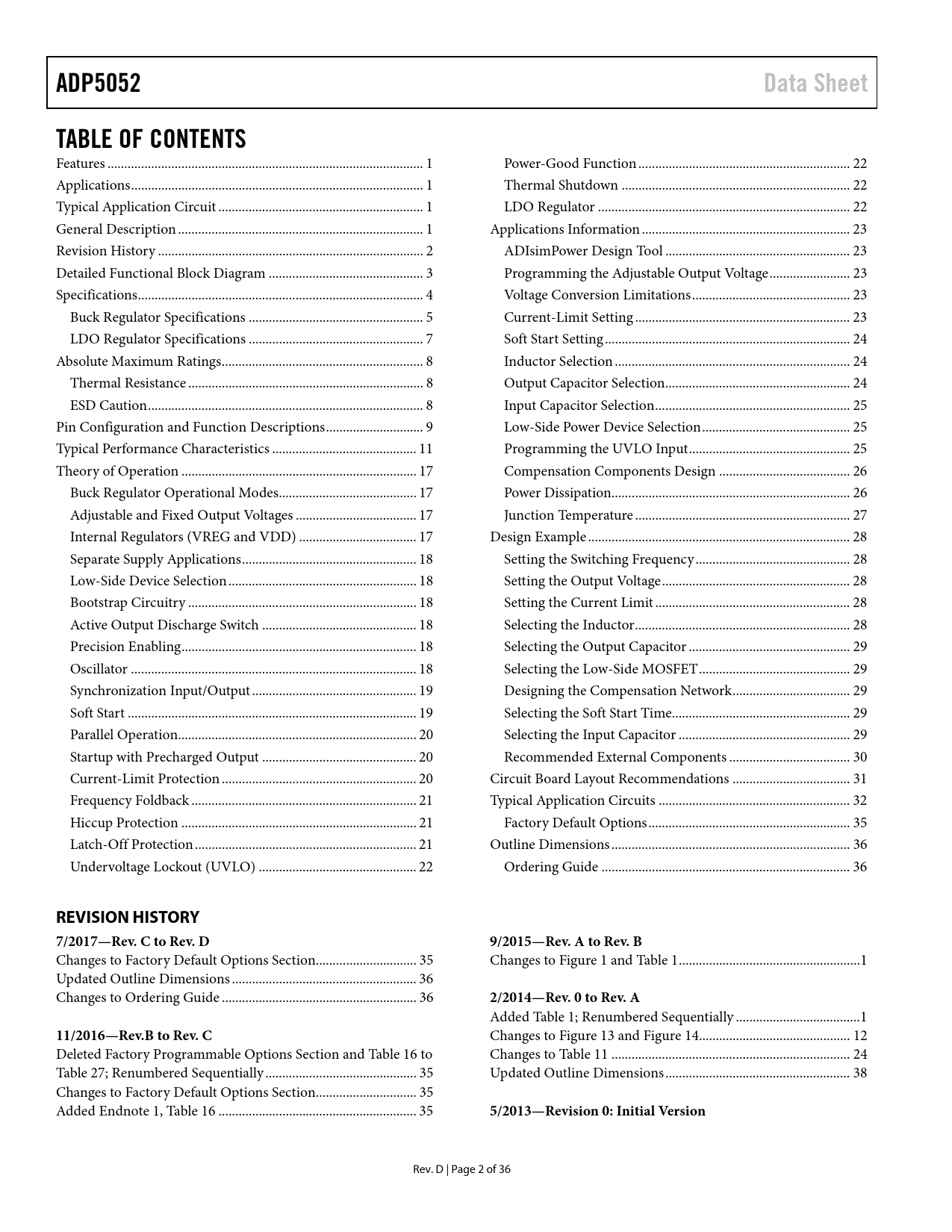 ADP5052 Data Sheet TABLE OF CONTENTS REVISION HISTORY 7/2017—Rev C to Rev D 9/2015—Rev A to Rev B 2/2014—Rev 0 to Rev A