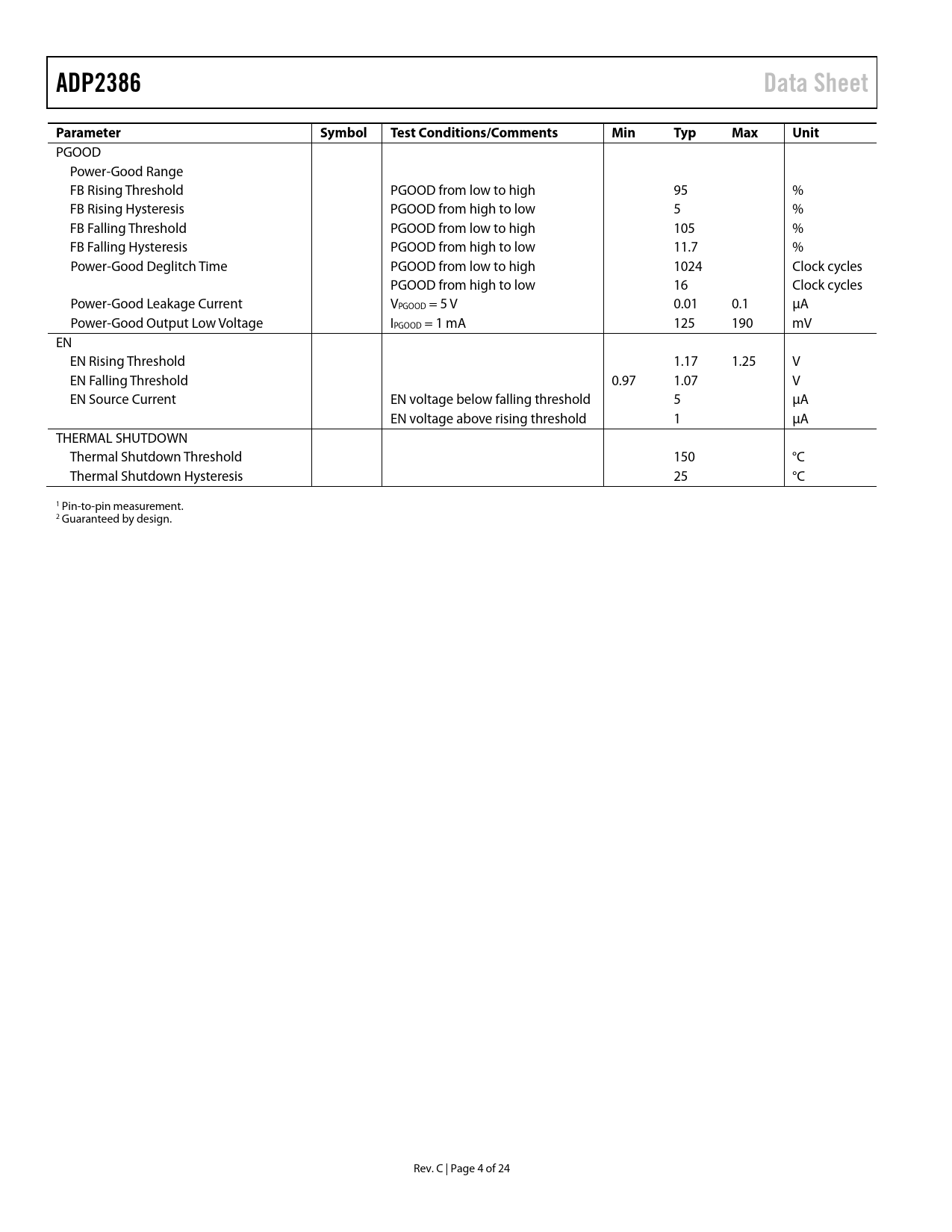 Páginas / Página24 / 4 — ADP2386. Data Sheet. Parameter. Symbol. Test Conditions/Comments. Min. …