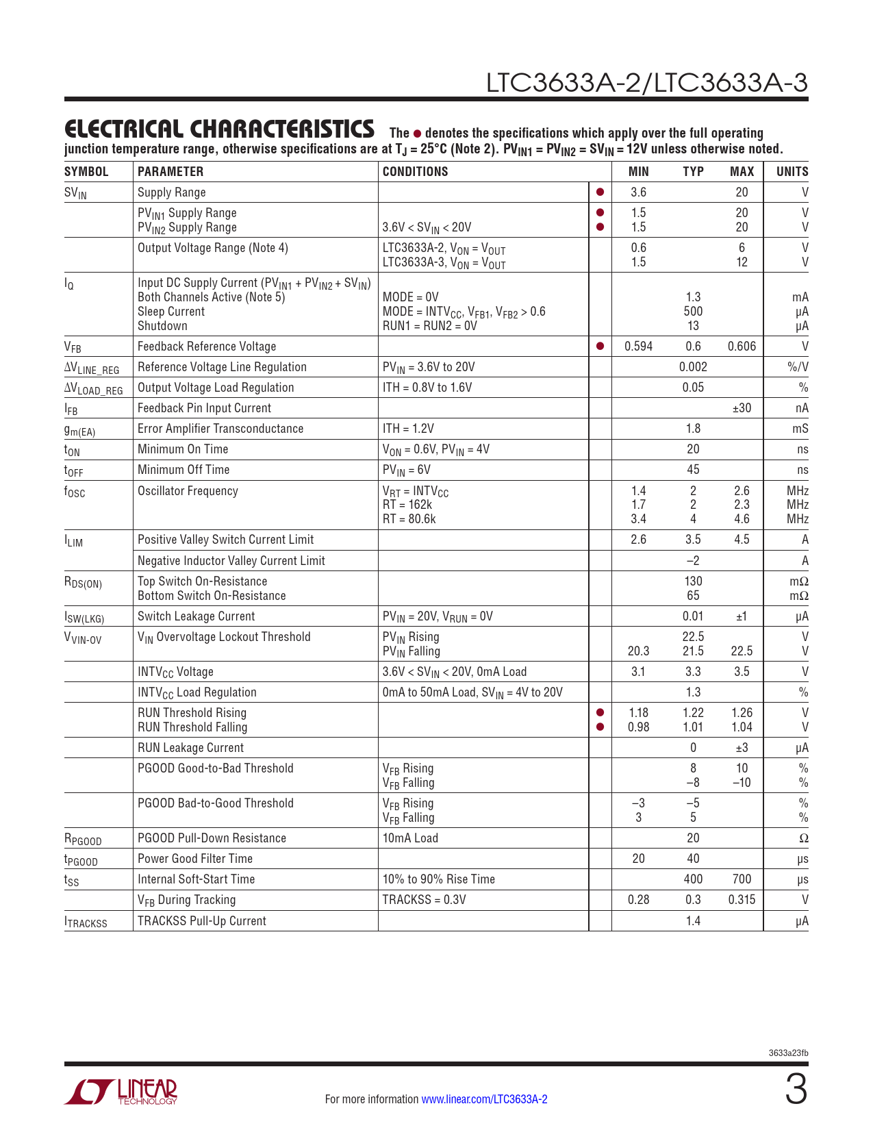 Datasheet LTC3633A-2, LTC3633A-3 (Analog Devices) - 3