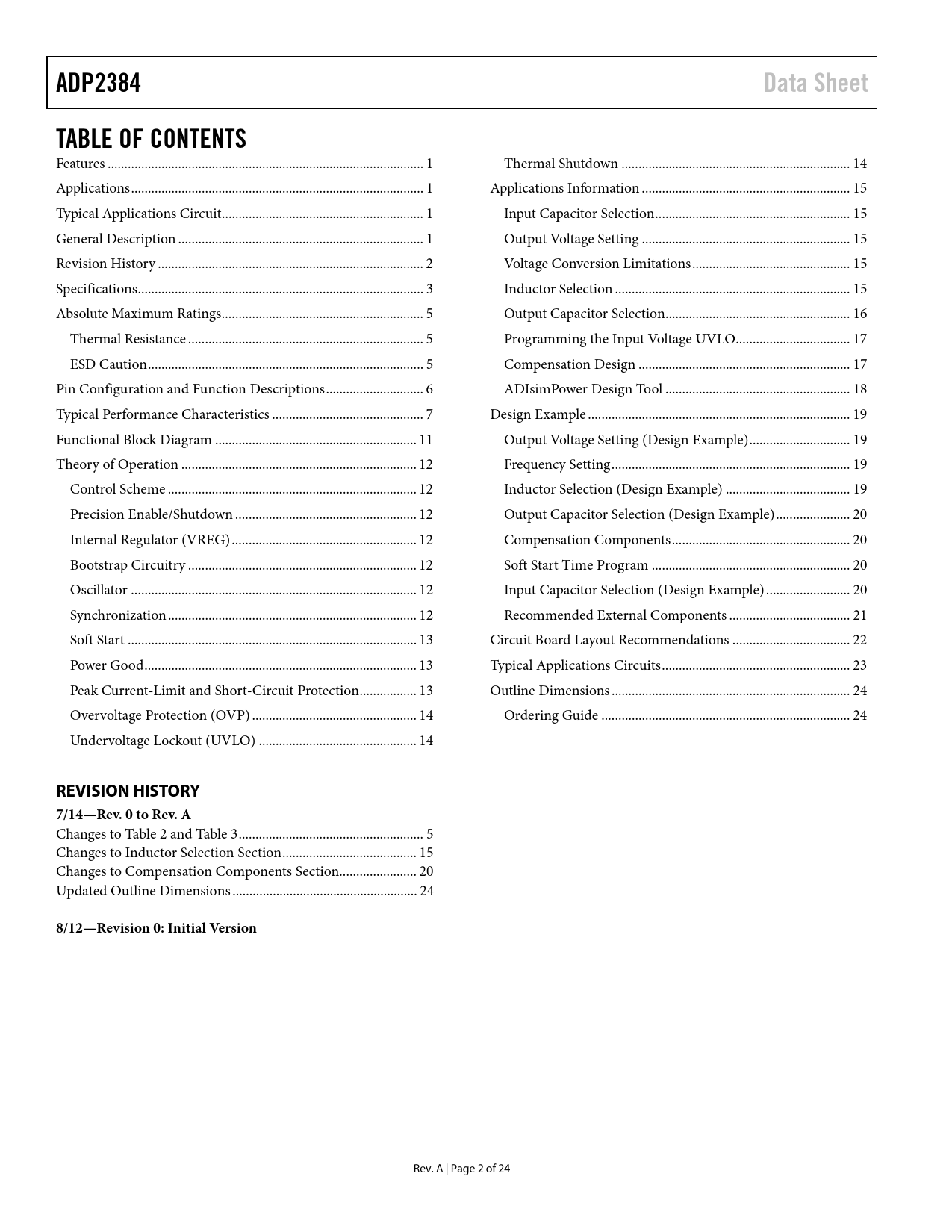 ADP2384 Data Sheet TABLE OF CONTENTS REVISION HISTORY 7/14—Rev 0 to Rev A 8/12—Revision 0: Initial Version