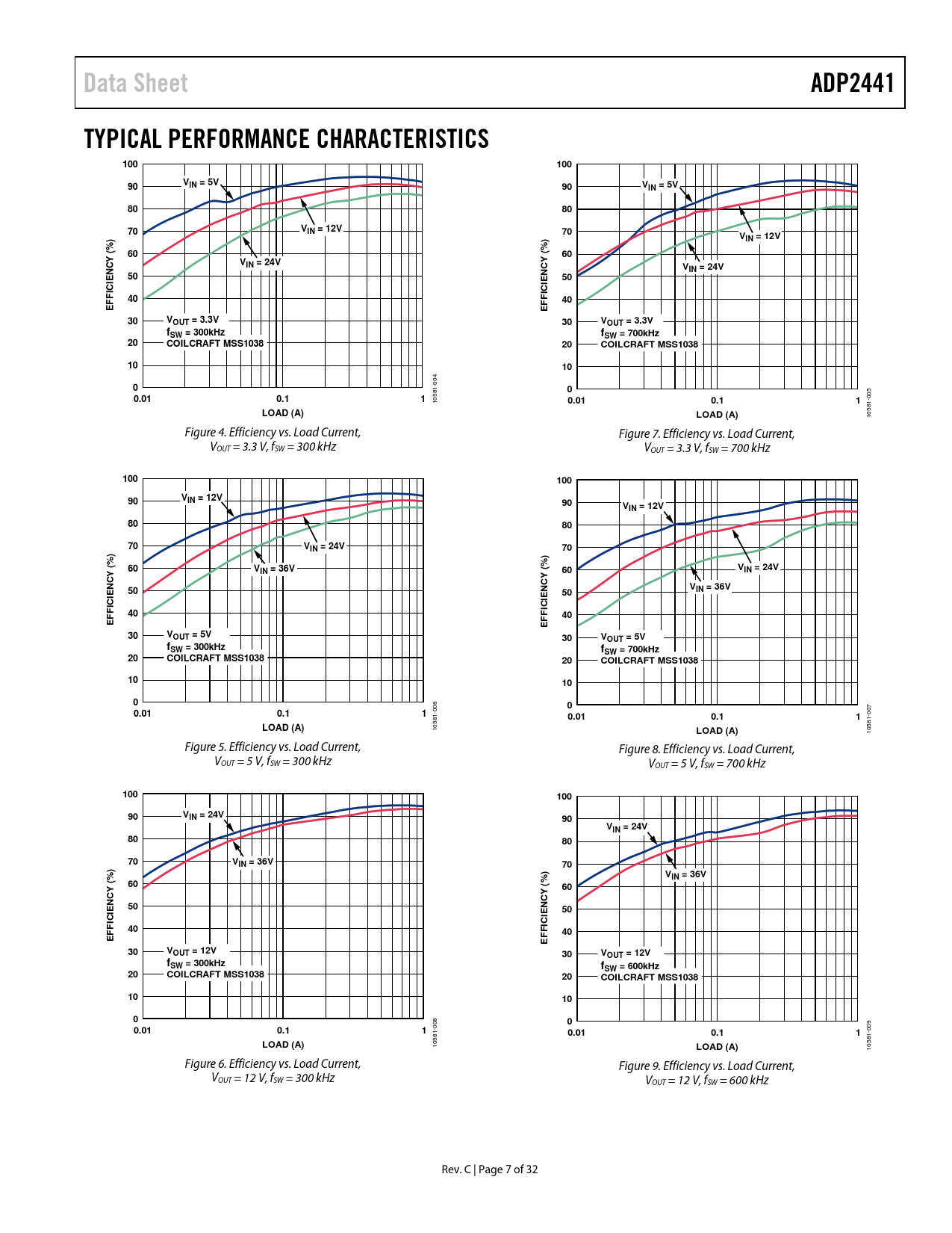 Data Sheet. ADP2441. TYPICAL PERFORMANCE CHARACTERISTICS. 100. IN = 5V. VIN = 5V. VIN = 12V. VIN = 24V. IN = 24V. FFIC. VOUT = 3.3V