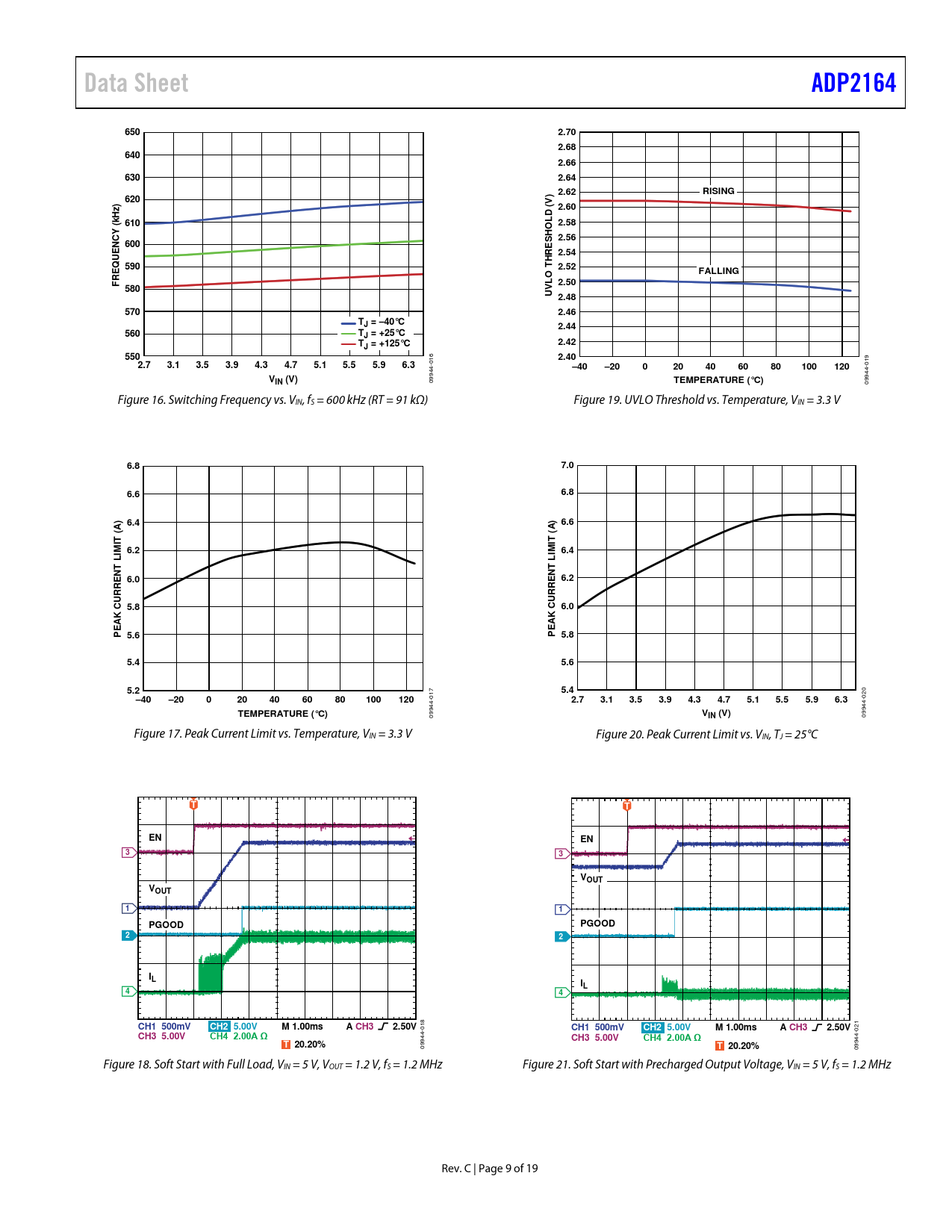 | Páginas / Página | 19 / 9 — Data Sheet. ADP2164. 650. 2.70. 2.68. 640. 2.66. 630. 2.64. 2.62. RISING. … |