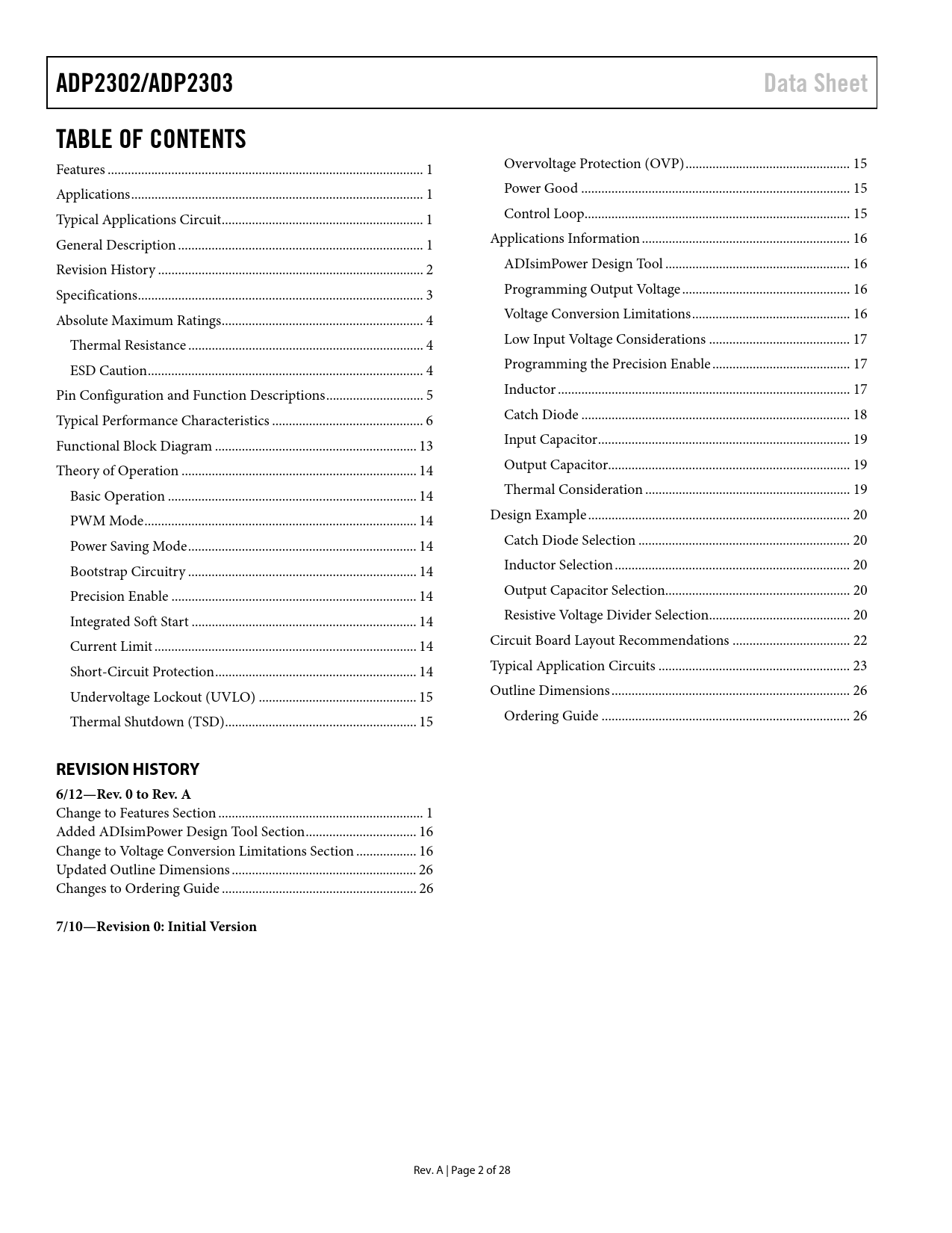 ADP2302/ADP2303 Data Sheet TABLE OF CONTENTS REVISION HISTORY 6/12—Rev 0 to Rev A 7/10—Revision 0: Initial Version