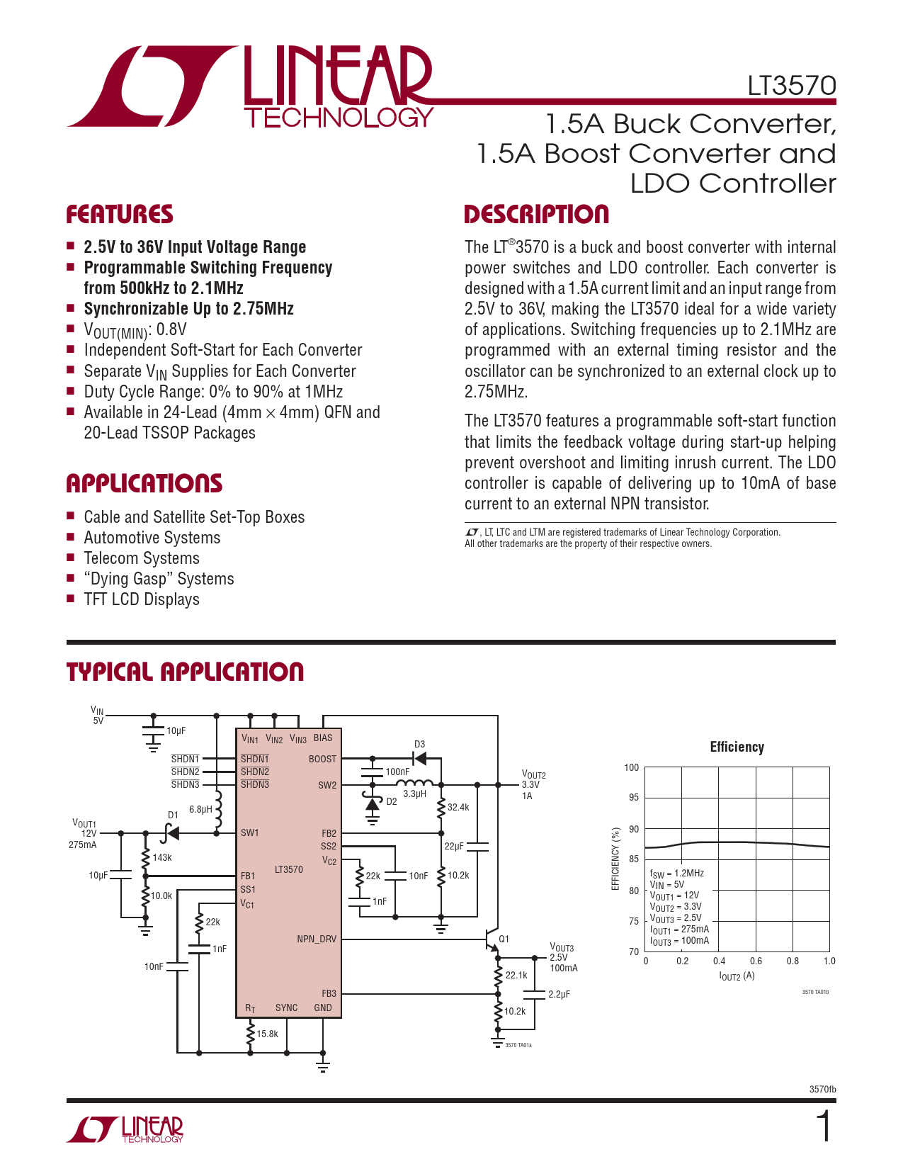 LT3570 1.5A Buck Converter, 1.5A Boost Converter and LDO Controller