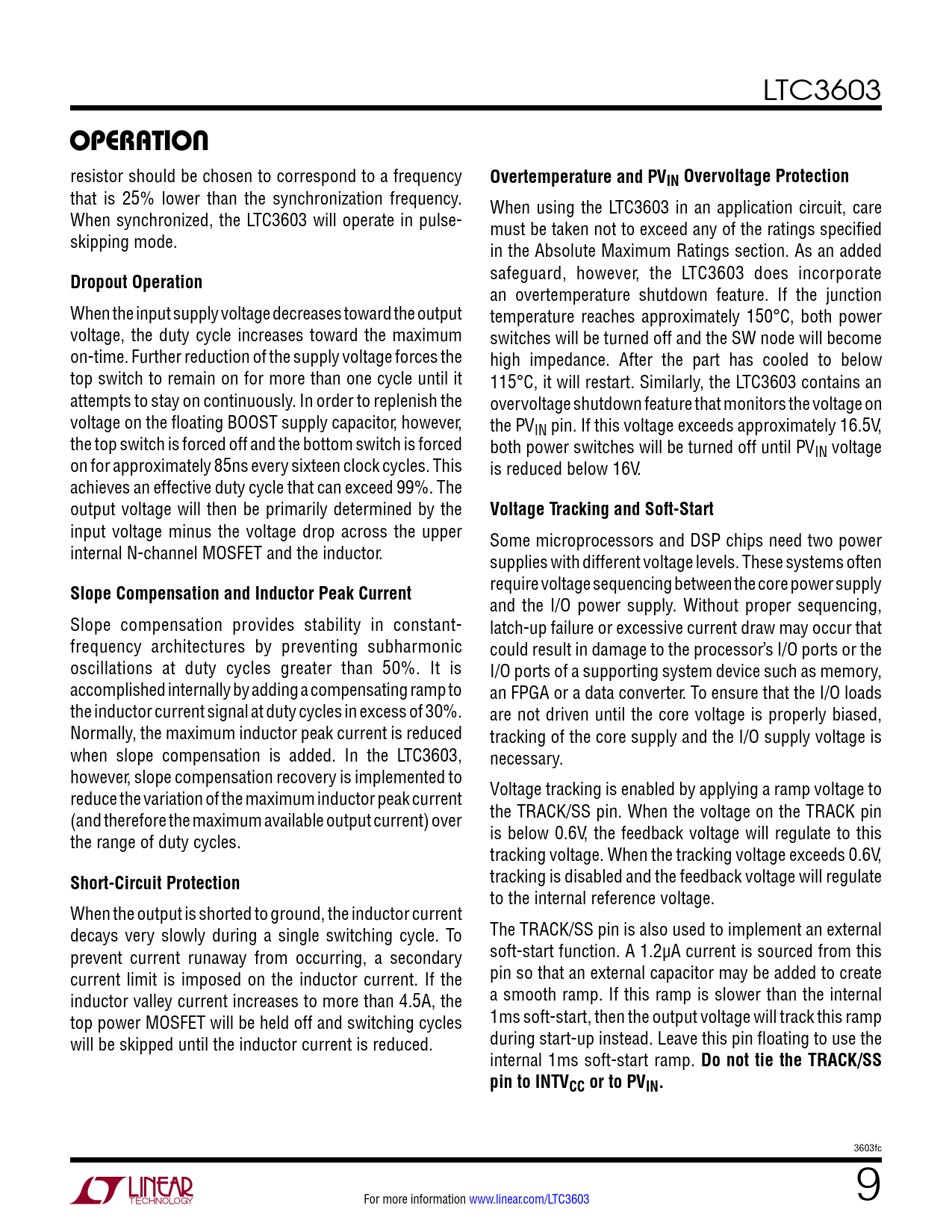 operation. Overtemperature and PVIN Overvoltage Protection. Dropout Operation. Voltage Tracking and Soft-Start