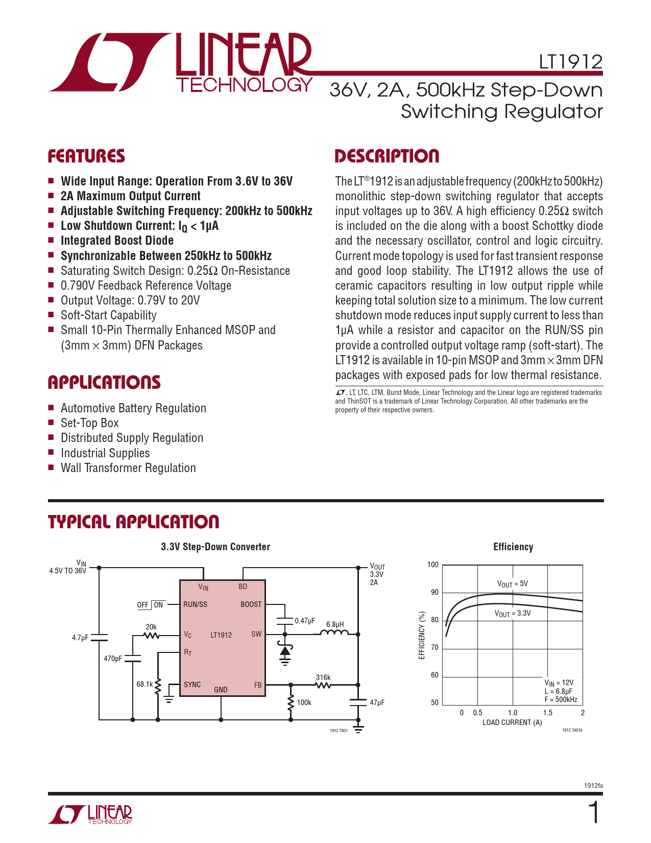 LT1912 36V, 2A, 500kHz Step-Down Switching Regulator