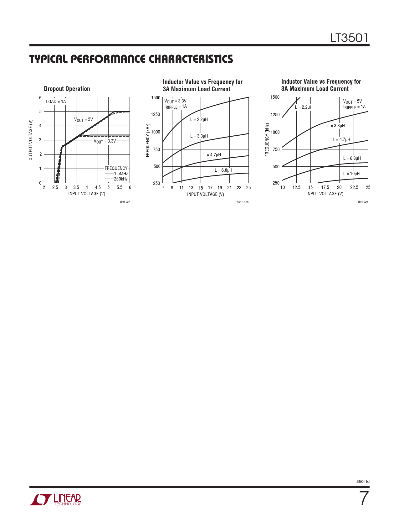 Typical perForMance characTerisTics. Inductor Value vs Frequency for. Dropout Operation. 3A Maximum Load Current
