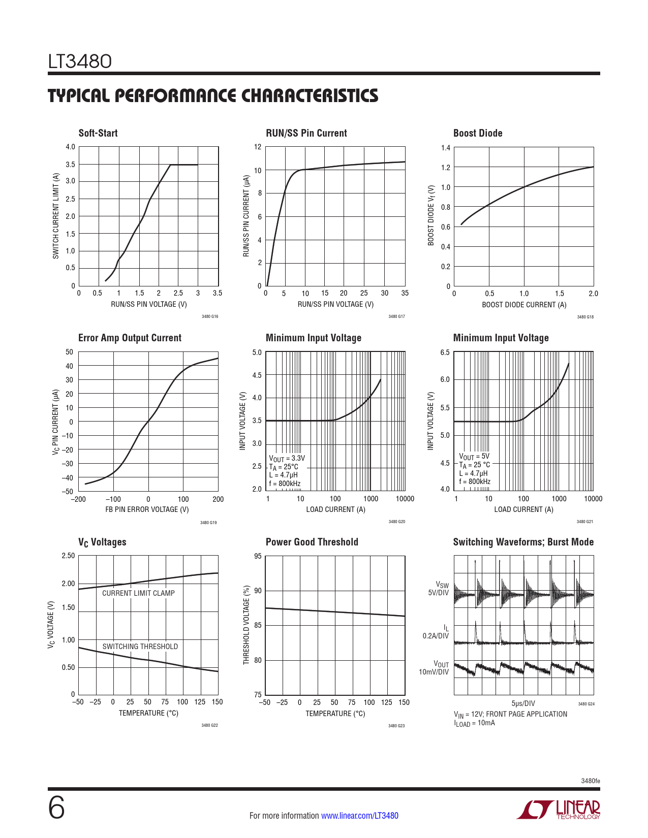 TYPICAL PERFORMANCE CHARACTERISTICS. Soft-Start. RUN/SS Pin Current. Boost Diode. Error Amp Output Current. Minimum Input Voltage