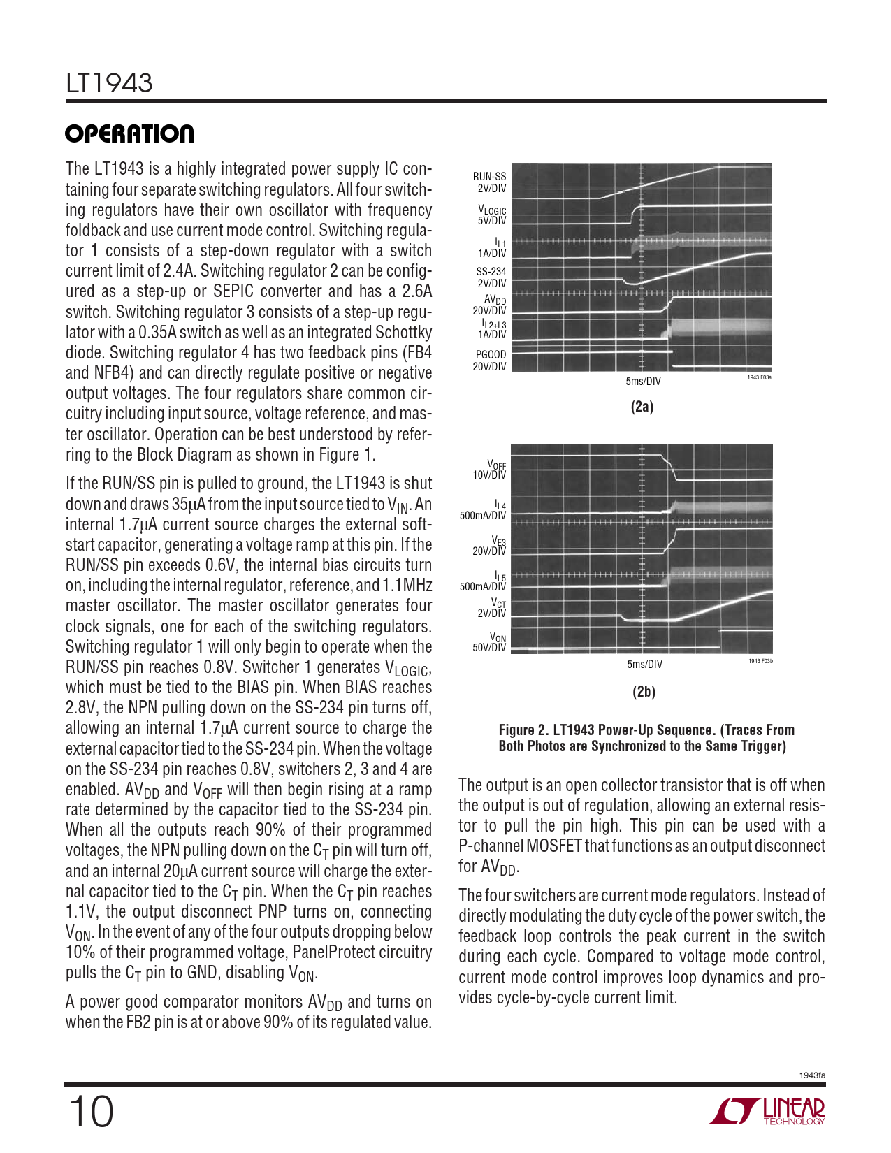OPERATIO (2a) (2b) Figure 2 LT1943 Power-Up Sequence (Traces From Both Photos are Synchronized to the Same Trigger)