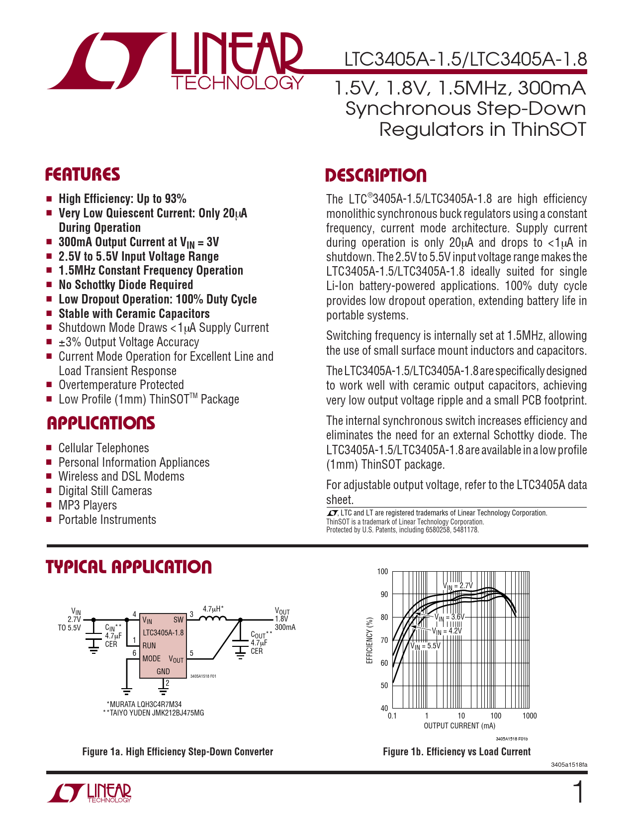 Datasheet LTC3405A-1.5, LTC3405A-1.8 Analog Devices
