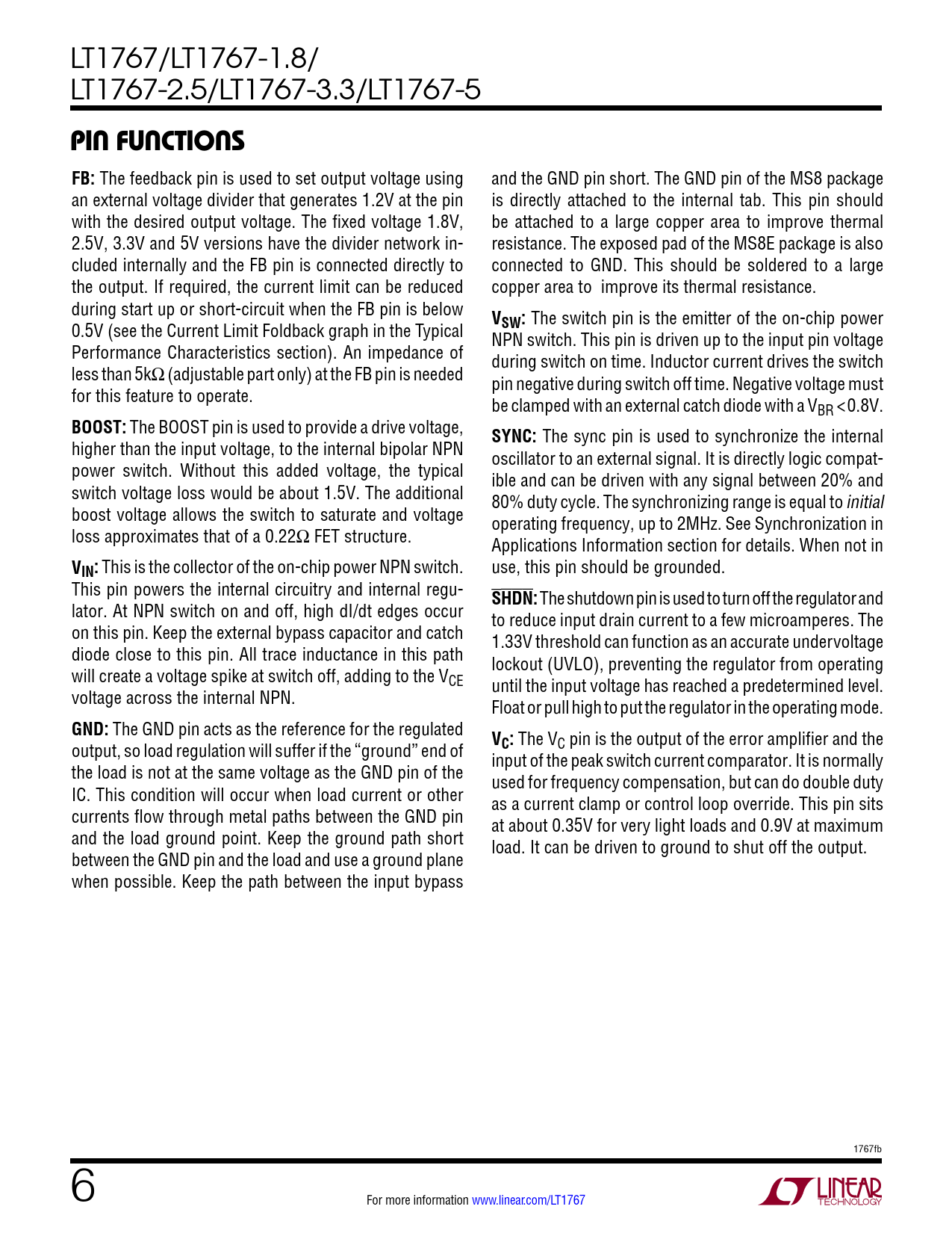 Datasheet LT1767, LT1767-1.8, LT1767-2.5, LT1767-3.3, LT1767-5 (Analog Devices) - 6