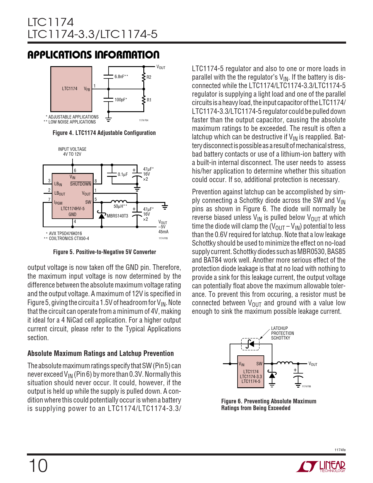 APPLICATIO S I FOR ATIO Figure 4 LTC1174 Adjustable Configuration Figure 5 Positive-to-Negative 5V Converter