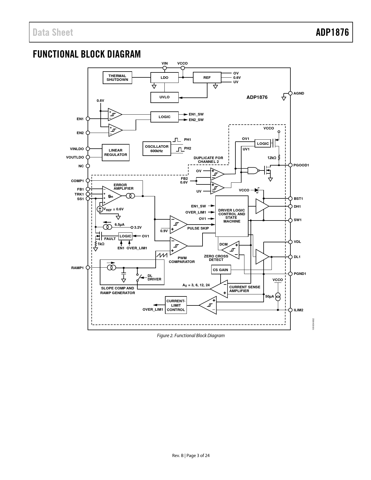 Páginas / Página24 / 3 — Data Sheet. ADP1876. FUNCTIONAL BLOCK DIAGRAM. VIN. VCCO. THERMAL. LDO. …