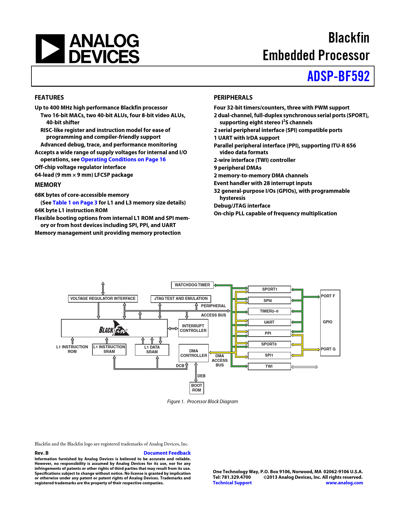 Figure 1. Processor Block Diagram Blackfin and the Blackfin logo are registered trademarks of Analog Devices, Inc.
