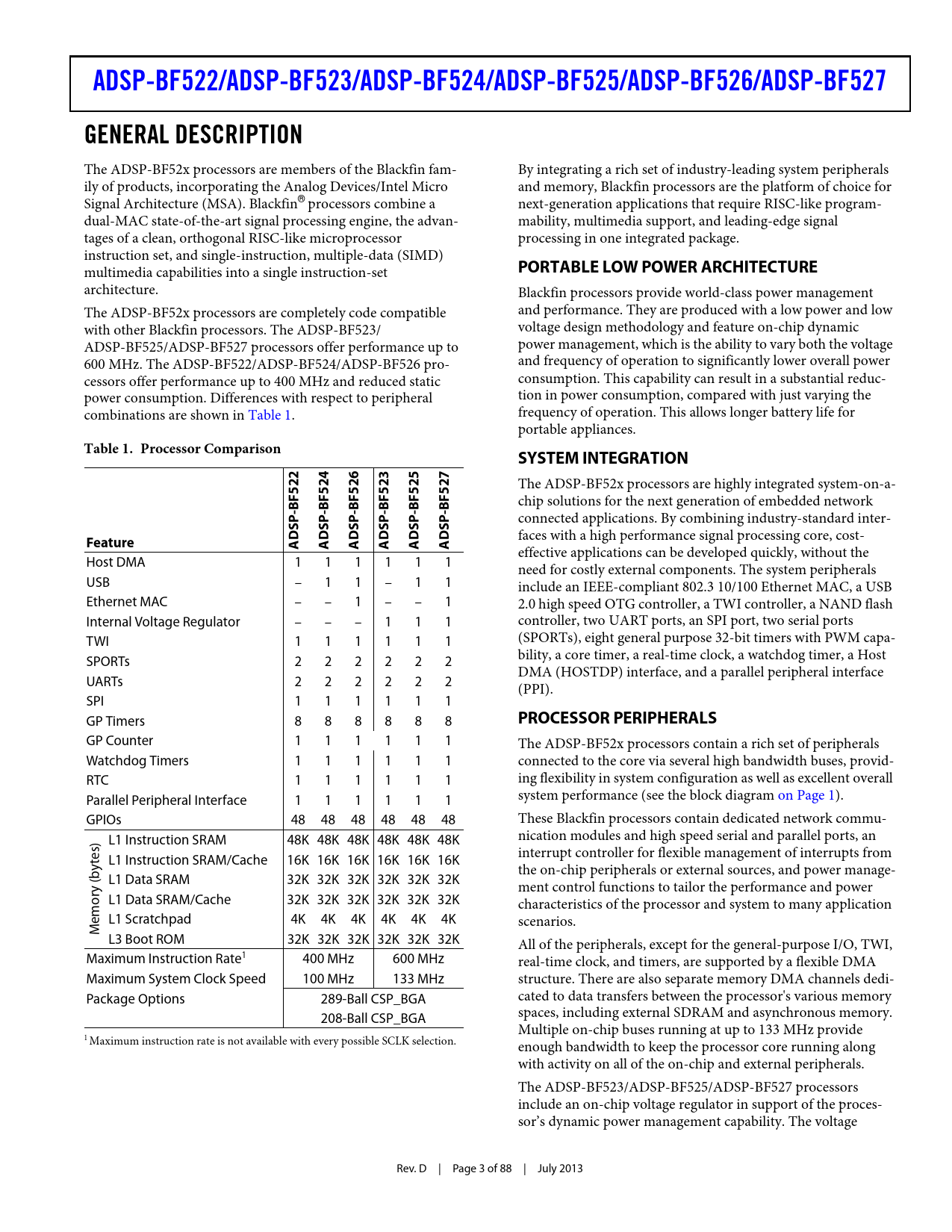 Datasheet ADSP-BF522, ADSP-BF523, ADSP-BF524, ADSP-BF525, ADSP-BF526, ADSP-BF527 (Analog Devices) - 3