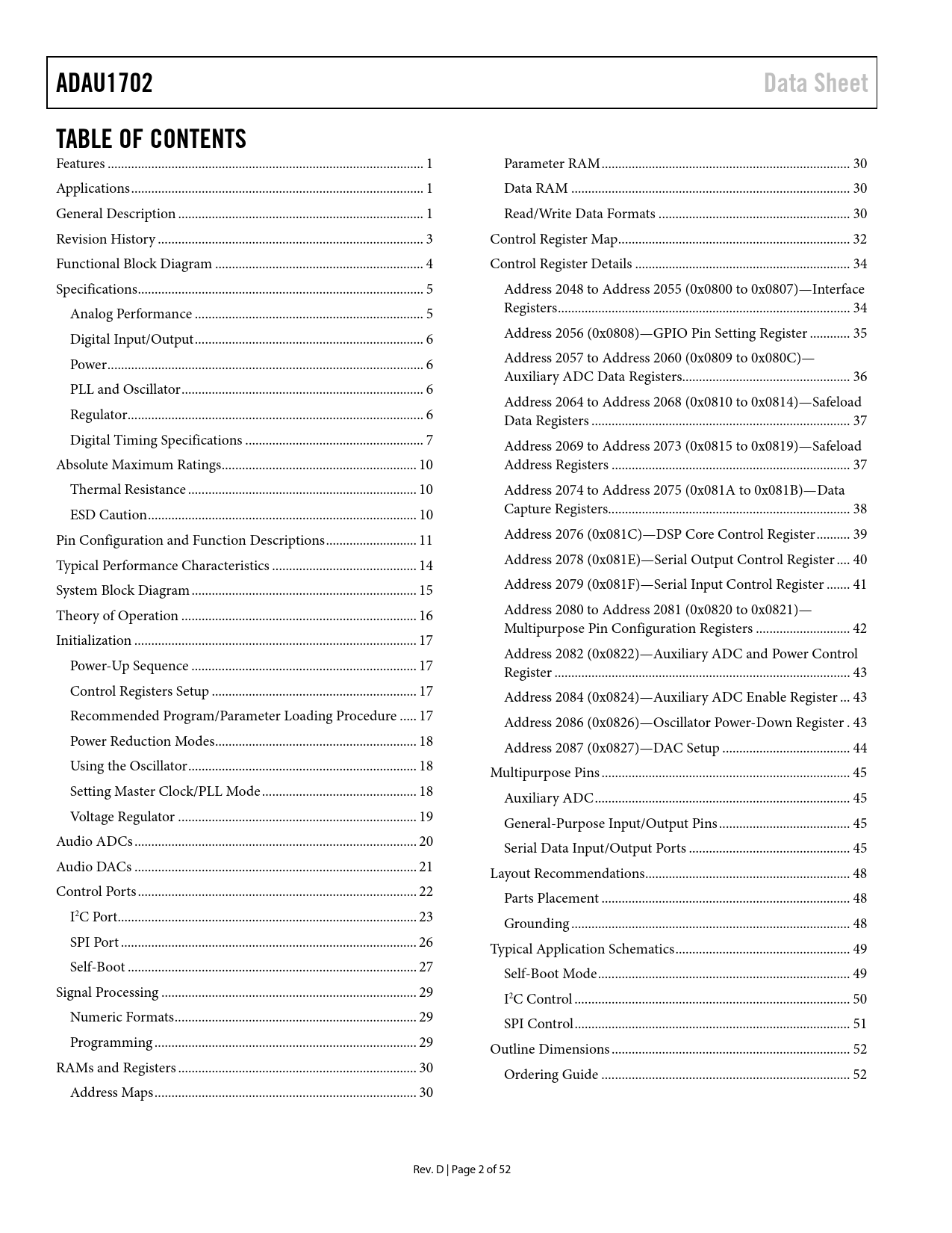 ADAU1702 Data Sheet TABLE OF CONTENTS