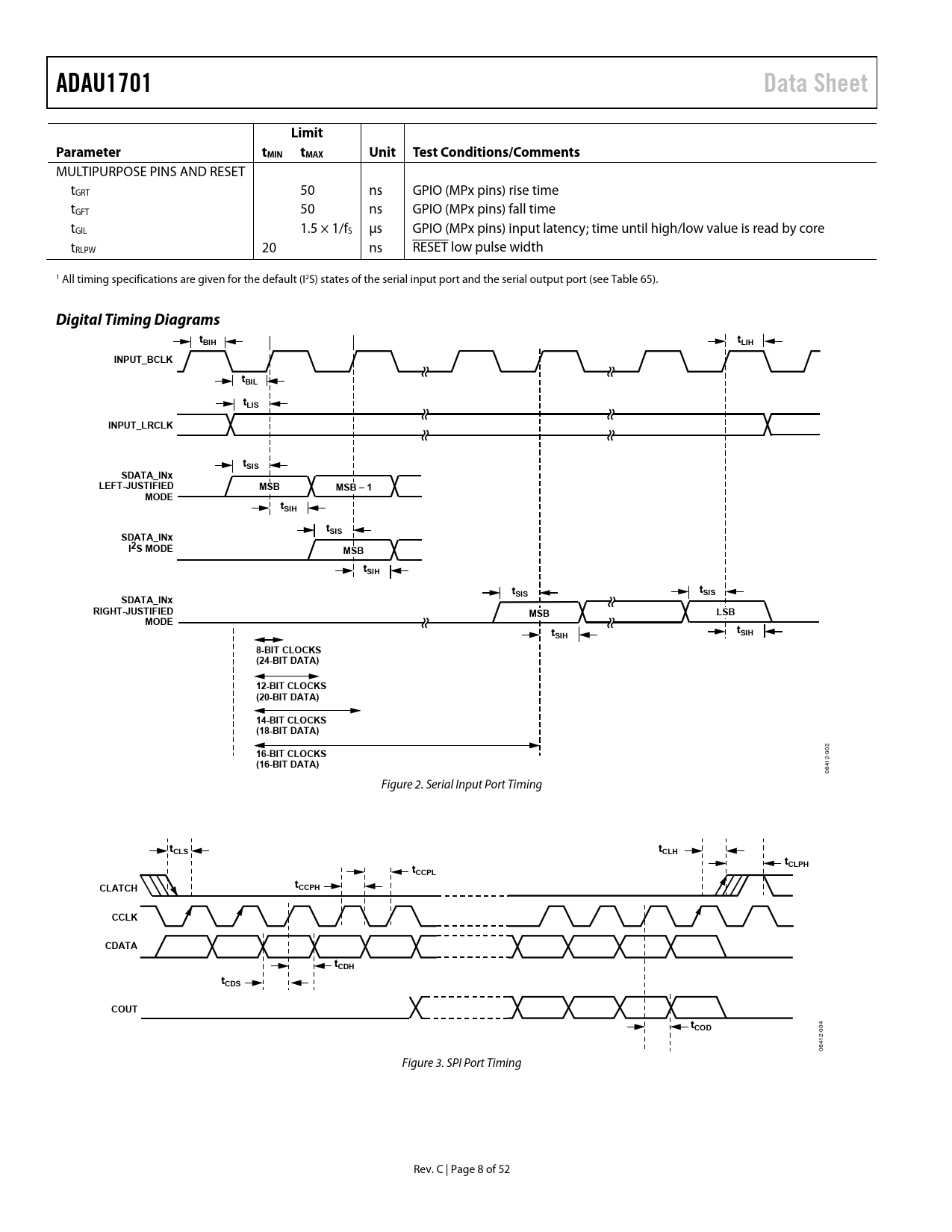 ADAU1701 Data Sheet Limit Parameter tMIN tMAX Unit Test Conditions/Comments