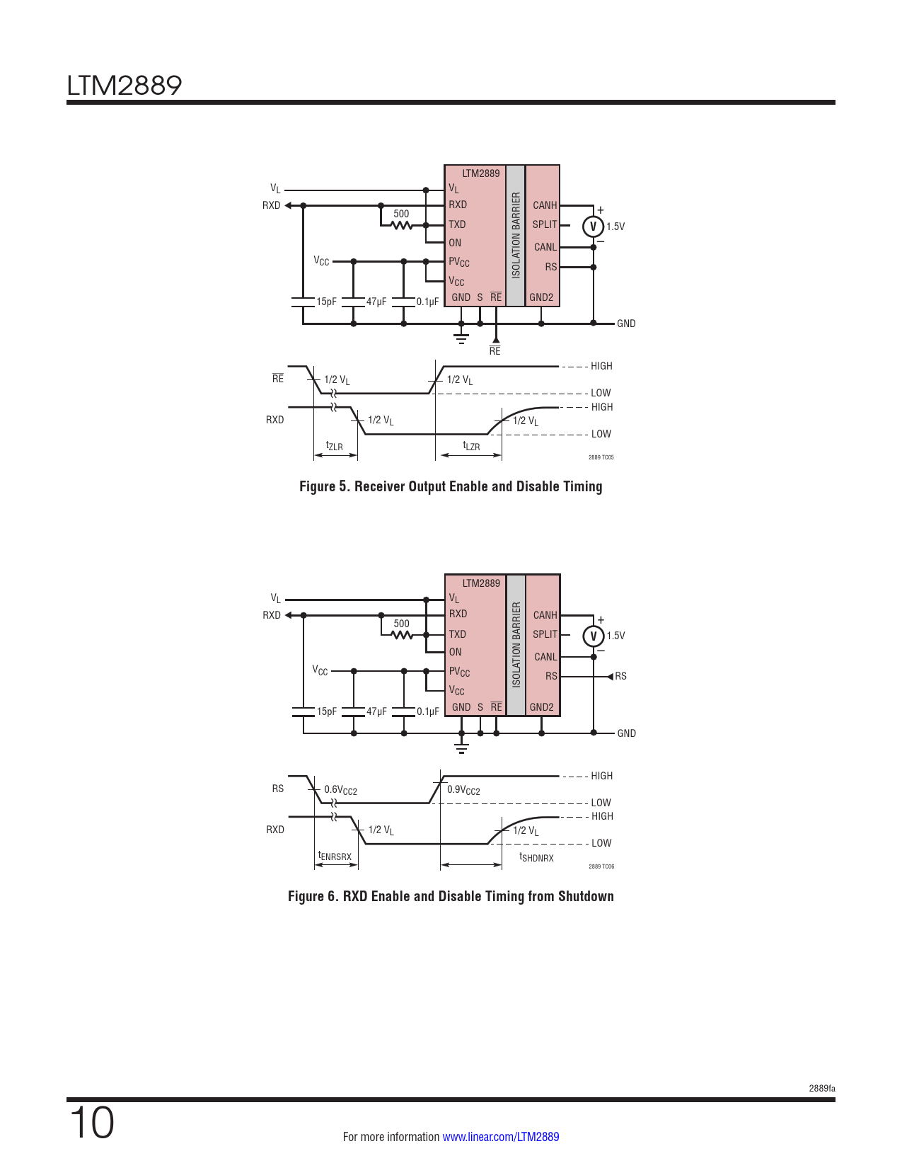 1.5V ON CANL – TION BARRIER VCC PVCC RS RS V ISOLA CC 15pF GND S RE GND2 47µF 0.1µF GND HIGH RS 0.6VCC2 0.9VCC2 LOW HIGH RXD 1/2 VL 1/2 VL LOW tENRSRX tSHDNRX 2889 TC06