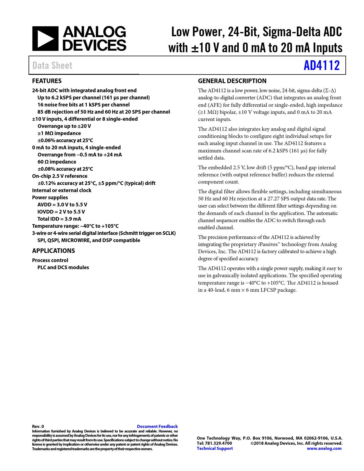 Datasheet AD4112 (Analog Devices)