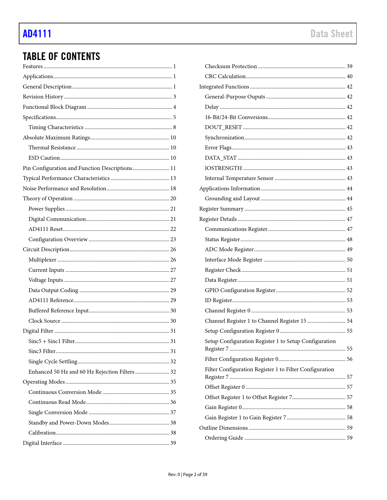Páginas / Página59 / 2 — AD4111. Data Sheet. TABLE OF CONTENTS
