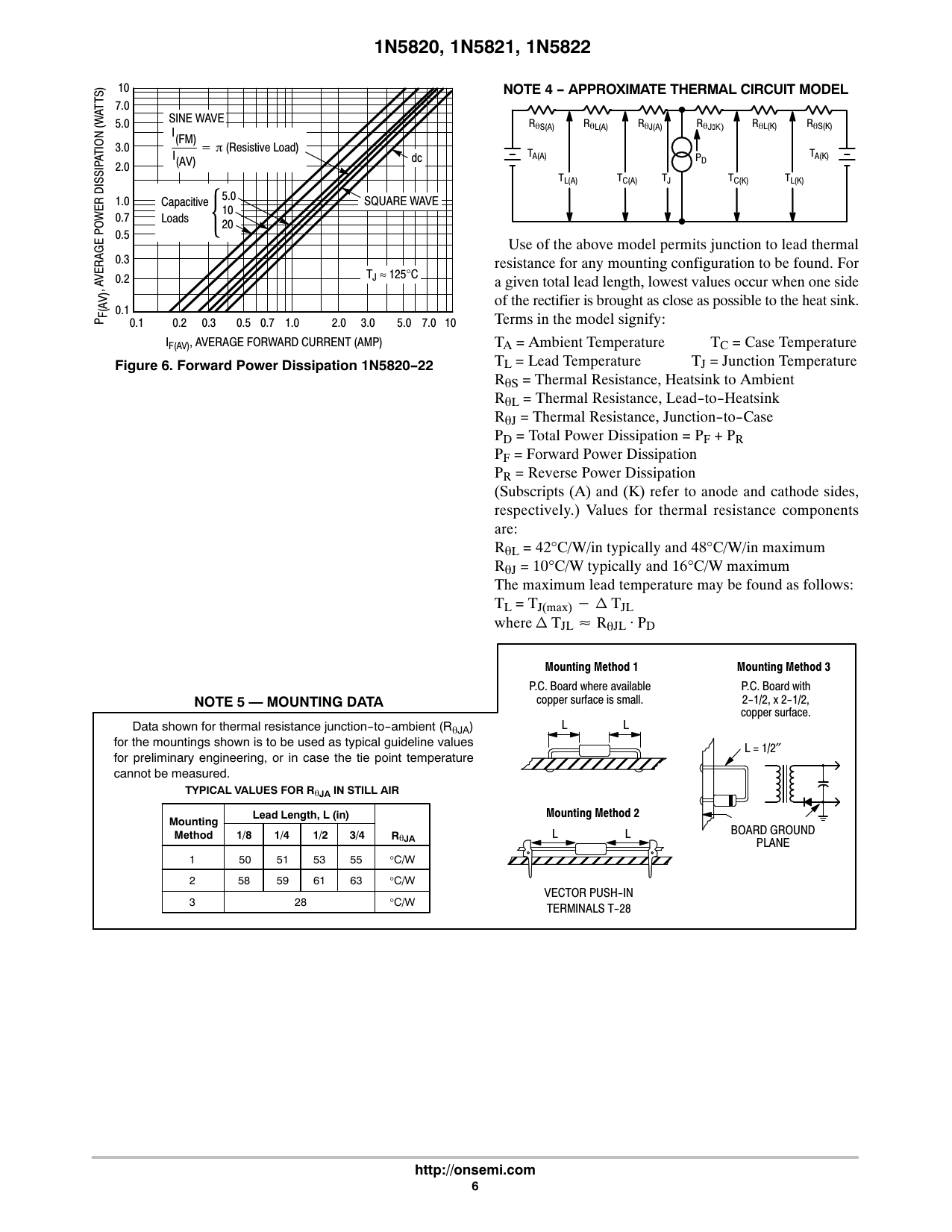 1N5820, 1N5821, 1N5822. NOTE 4 - APPROXIMATE THERMAL CIRCUIT MODEL. Figure 6. Forward Power Dissipation 1N5820-22