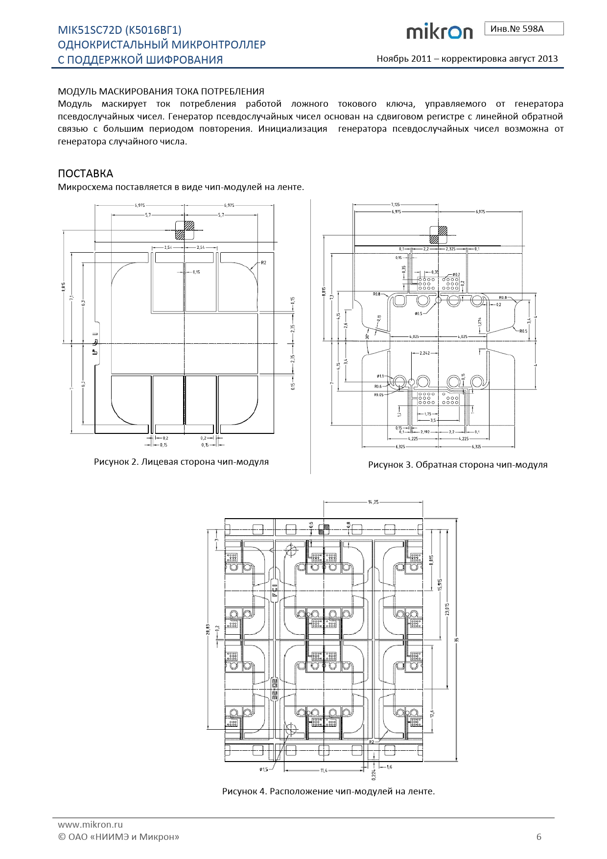 MIK51SC72D. (K5016ВГ1). Инв.№. 598А. ОДНОКРИСТАЛЬНЫЙ. МИКРОНТРОЛЛЕР. С. ПОДДЕРЖКОЙ. ШИФРОВАНИЯ. Ноябрь. 2011. –. корректировка. август. 2013. МОДУЛЬ