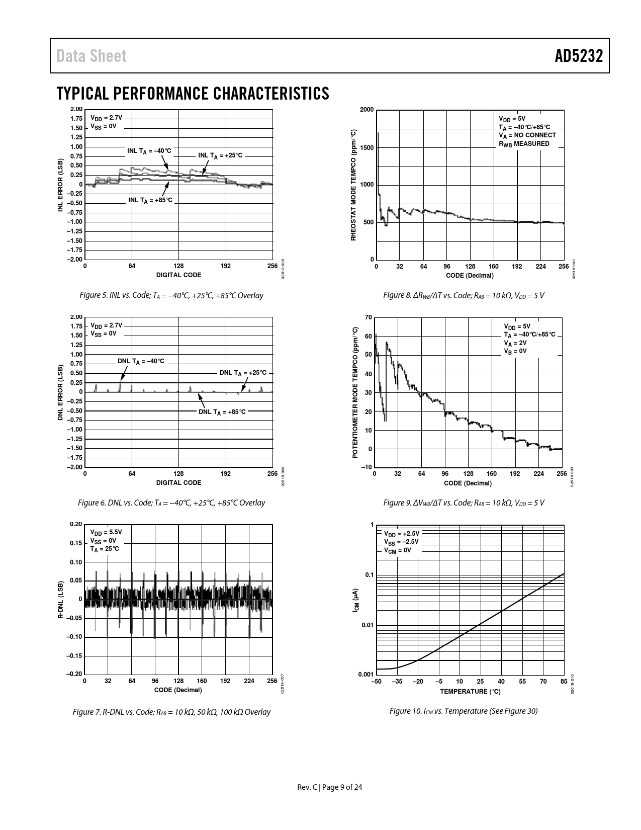 Data Sheet. AD5232. TYPICAL PERFORMANCE CHARACTERISTICS. 2.00. 2000. 1.75. VDD = 2.7V. VDD = 5V. 1.50. VSS = 0V. TA = –40°C/+85°C. 1.25