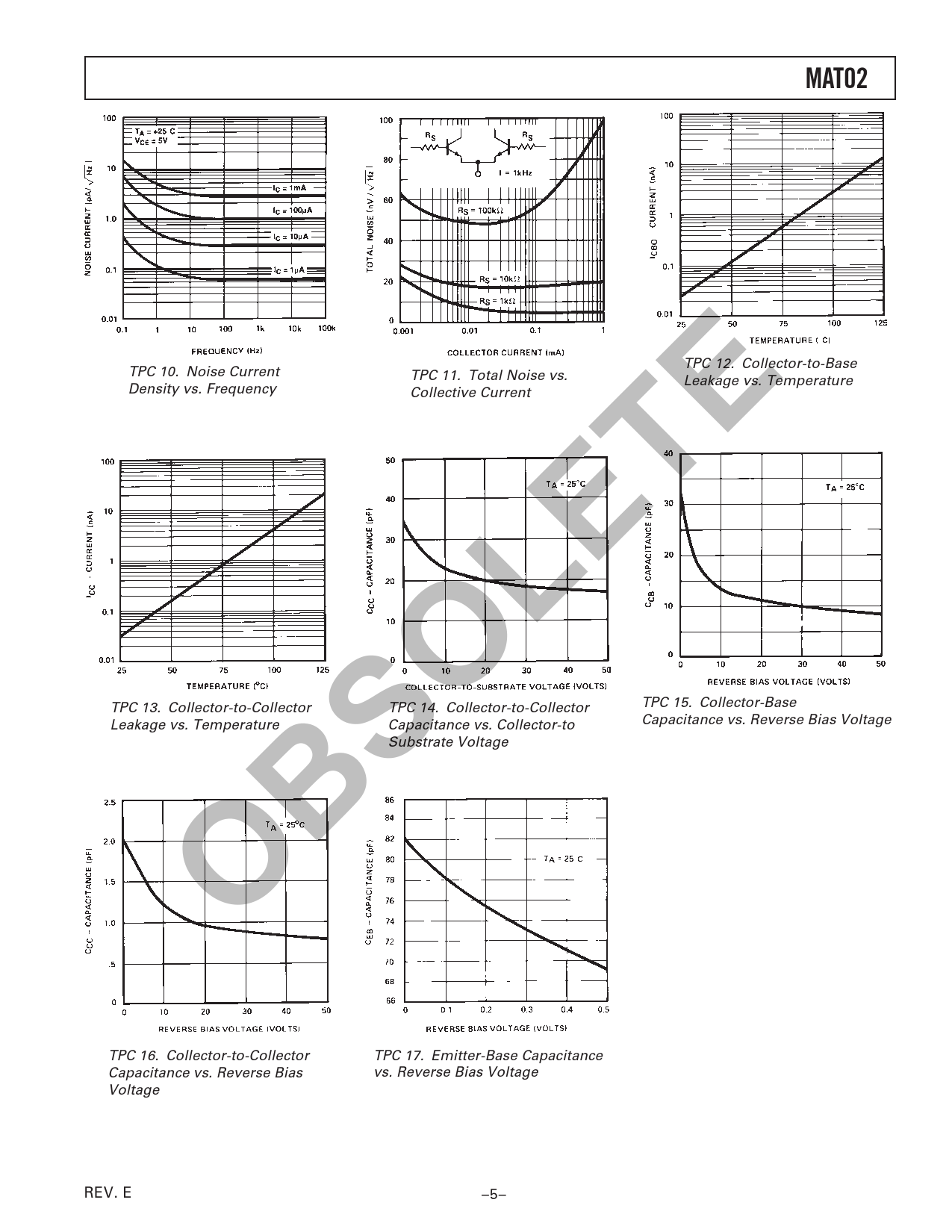 TPC 12. Collector-to-Base TPC 10. Noise Current TPC 11. Total Noise vs. Leakage vs. Temperature Density vs. Frequency Collective Current TPC 13. Collector-to-Collector TPC 15. Collector-Base TPC 14. Collector-to-Collector Leakage vs. Temperature Capacitance vs. Reverse Bias Voltage Capacitance vs. Collector-to Substrate Voltage
